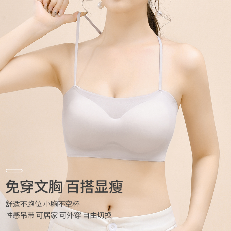 无痕抹胸内衣女防走光小胸聚拢加厚显大内搭美背吊带文胸一体裹胸