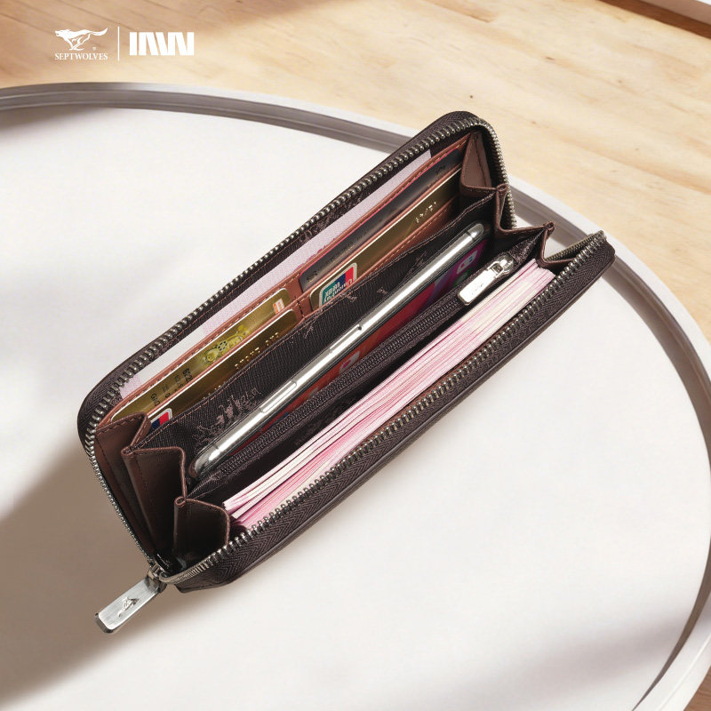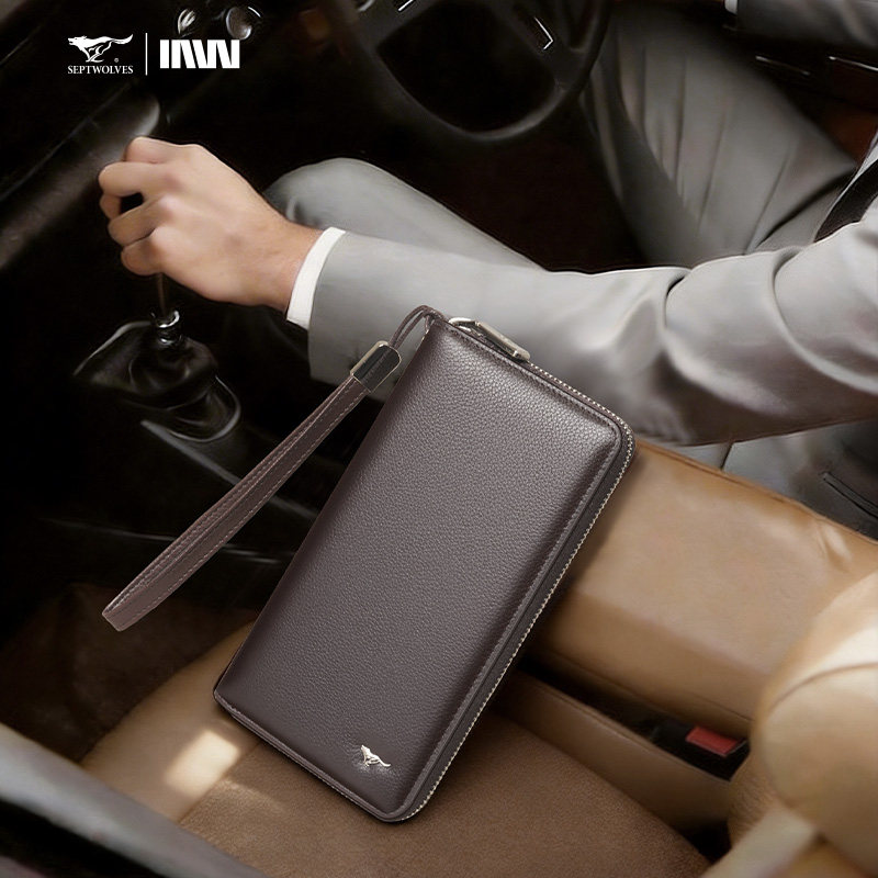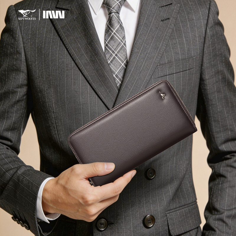 七匹狼钱包男长款拉链大容量软皮手拿包真皮皮夹包生日礼物送爸爸