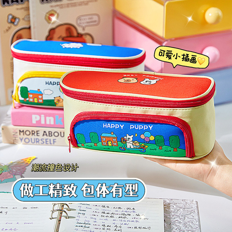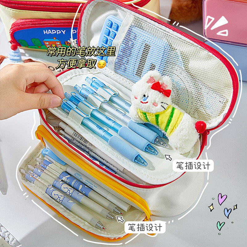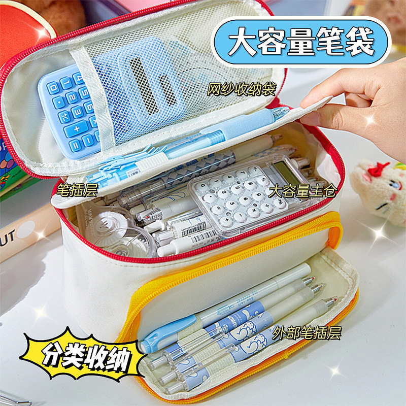新款卡皮巴拉农场大容量笔袋 帆布男生女生通用笔盒 高颜值多层分隔文具收纳大开口可插笔小学生初中生铅笔袋