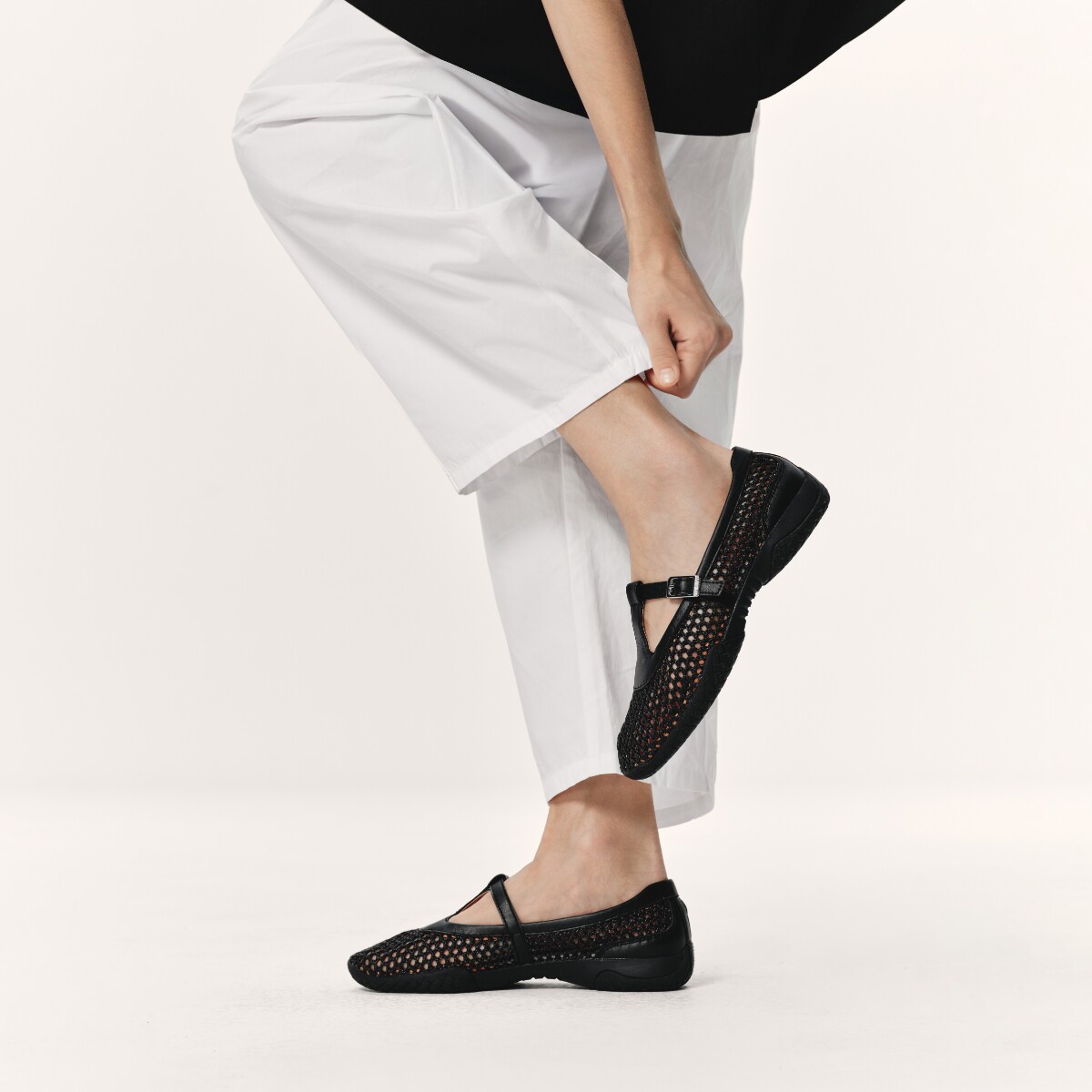 足下工业渔网芭蕾鞋 FOOT INDUSTRY 黑色女鞋春夏休闲网面透气