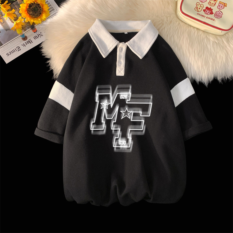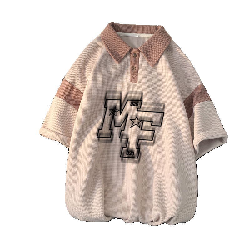 华夫格短袖Polo衫男夏季大码男装翻领t恤上衣美式复古青少年体恤