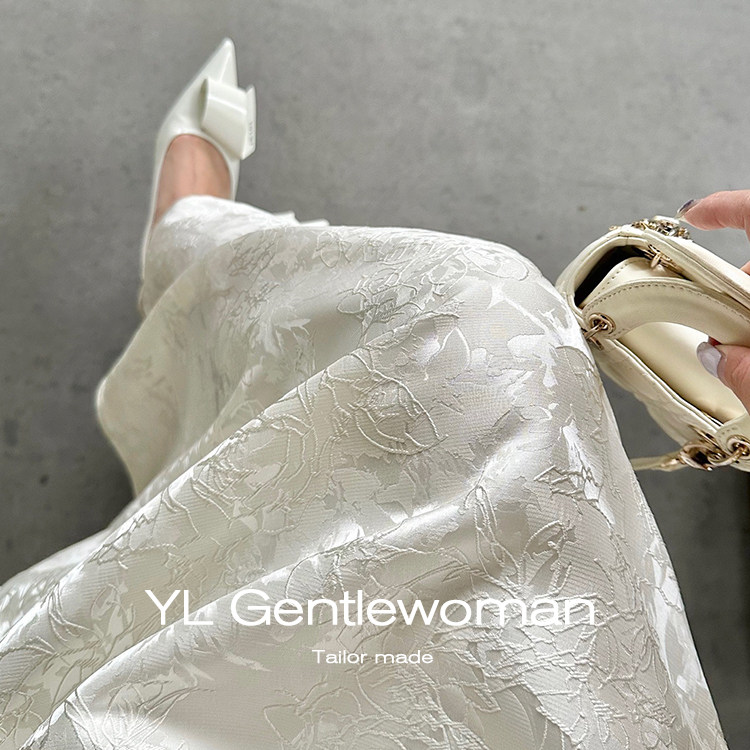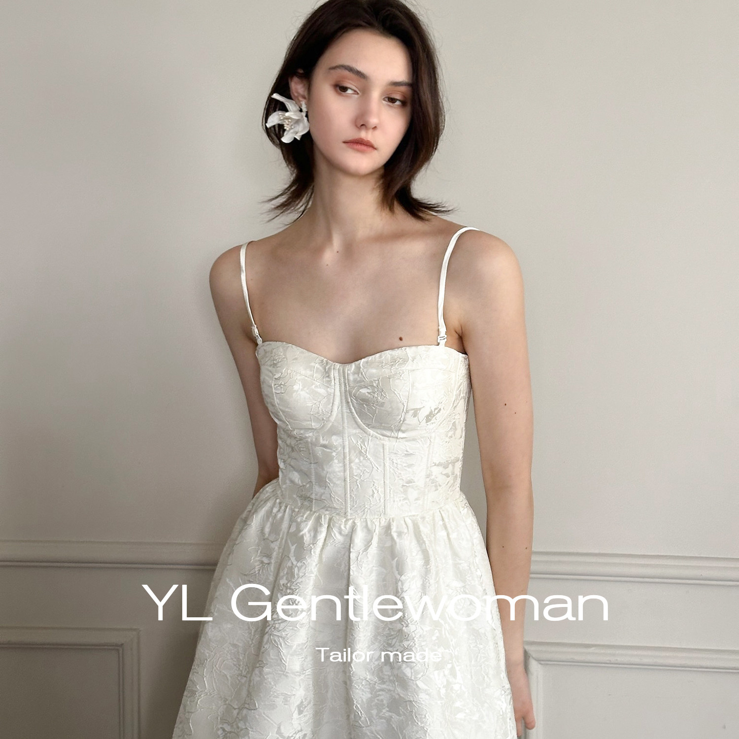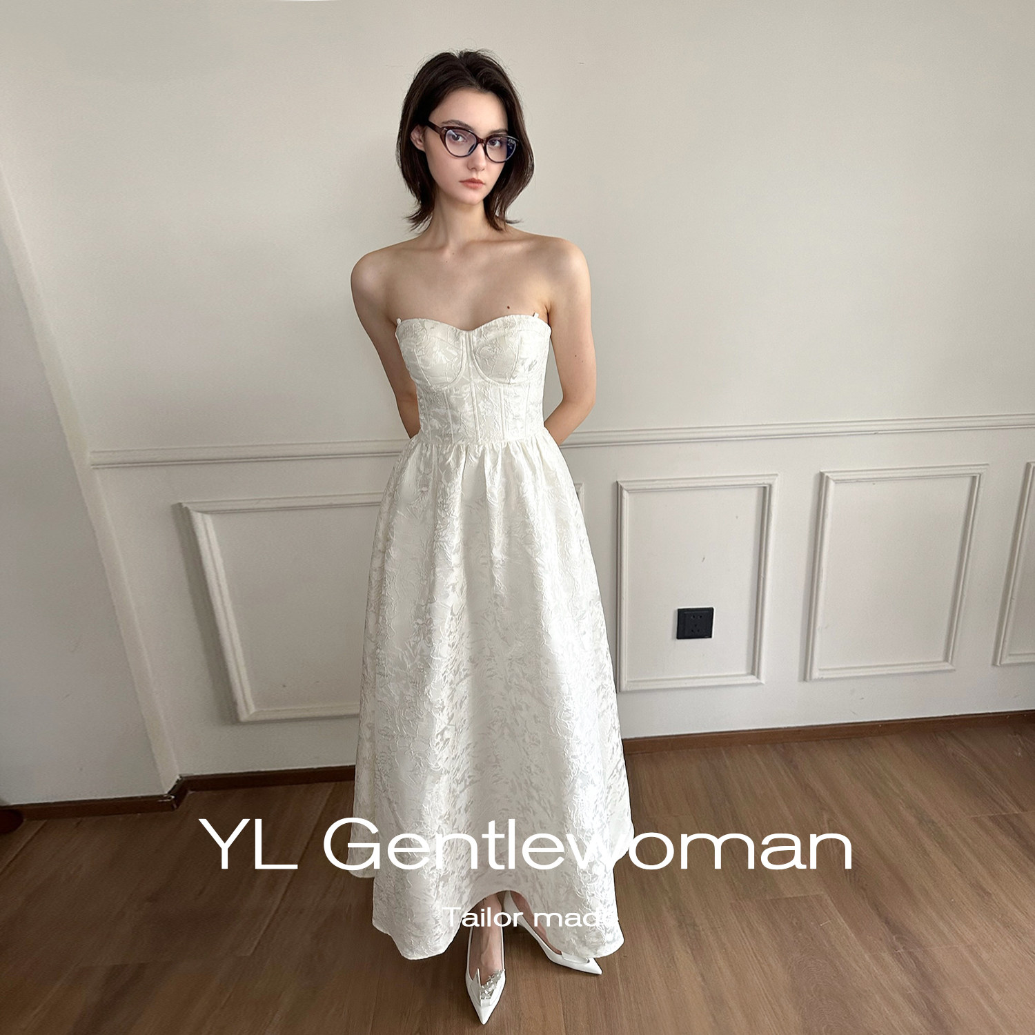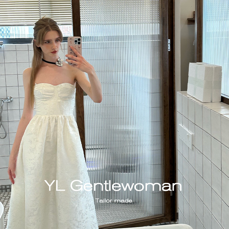 YL Gentlewoman白色提花抹胸连衣裙气质订婚小礼服裙领证长裙