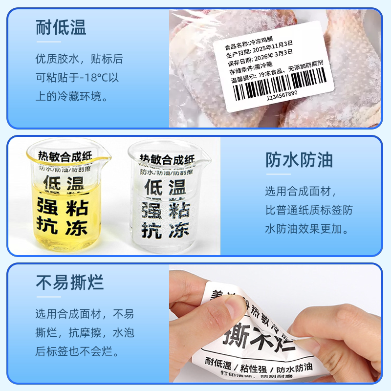 五防热敏标签纸pp合成纸60x40*30 20 50 70 80 100耐低温防水撕不烂三防不干胶打印纸生鲜冷链食品贴纸定制