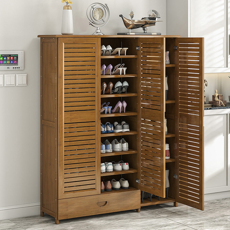 鞋柜家用门口收纳大容量实木玄关柜一体多层透气省空间简易竹鞋架