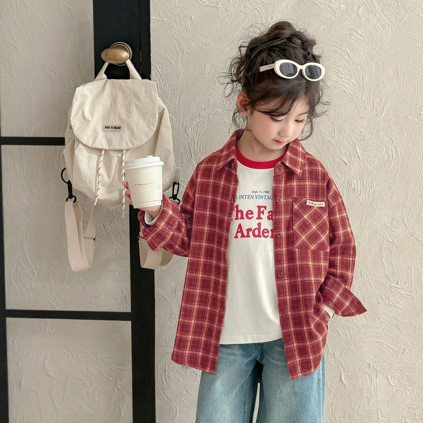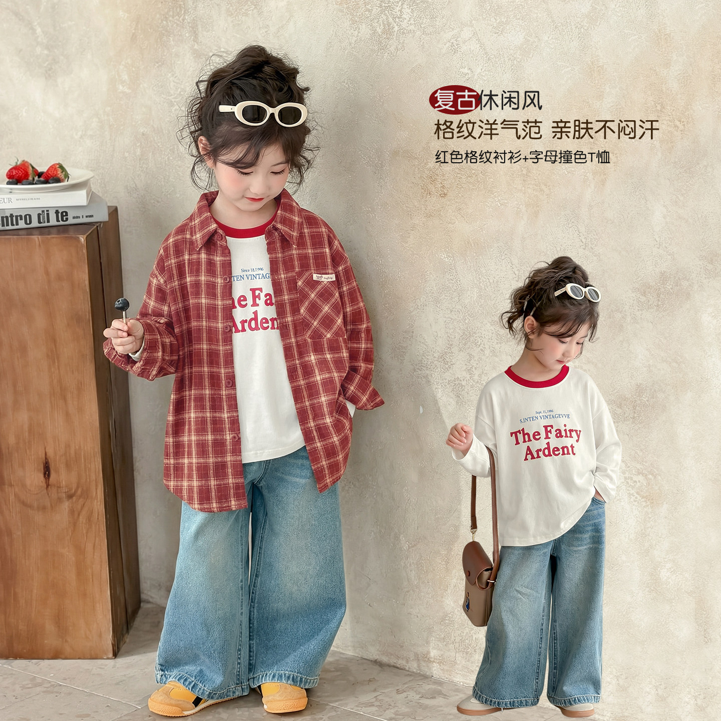 女童套装春装2026新款儿童春季格子衬衫外套宝宝春秋款字母打底衫
