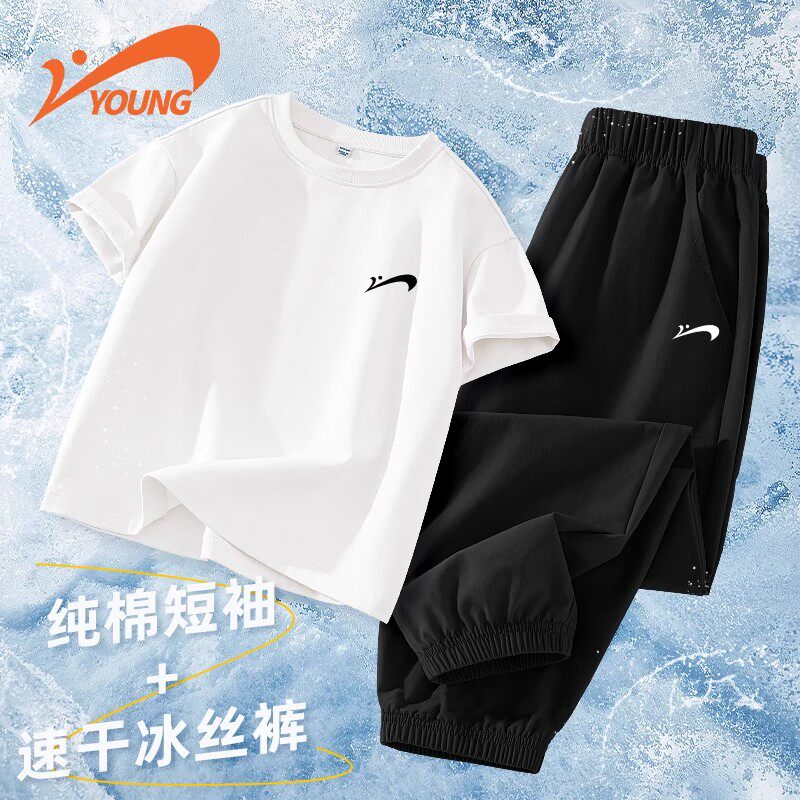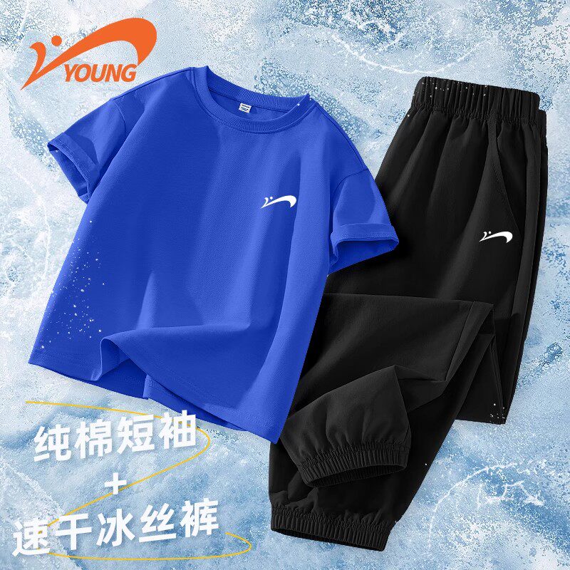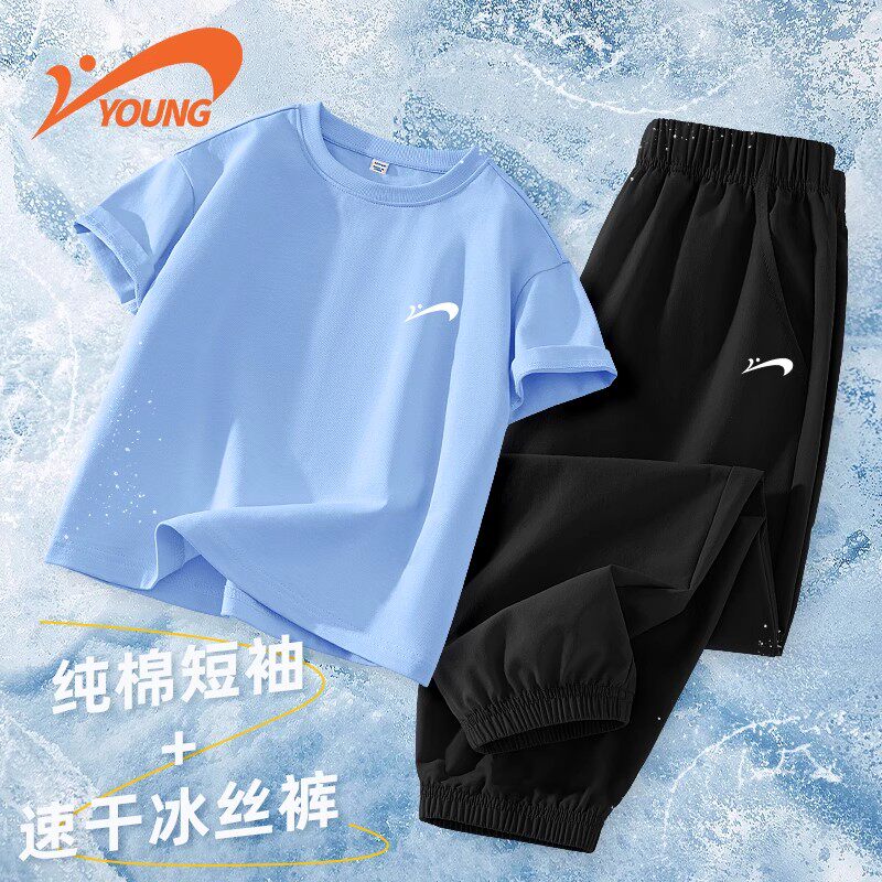 贵人鸟儿童纯棉套装男童夏季短袖t恤女孩2026新款大童薄款运动裤