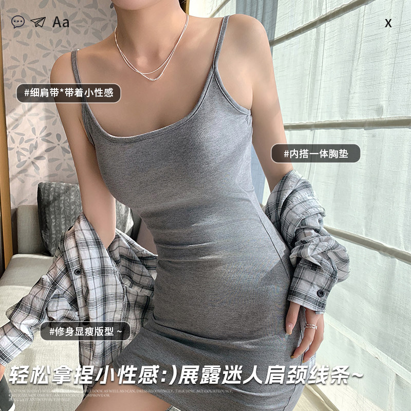 性感纯欲风吊带连衣裙女夏季薄款收腰显瘦带胸垫美背大码吊带睡裙