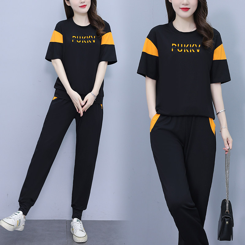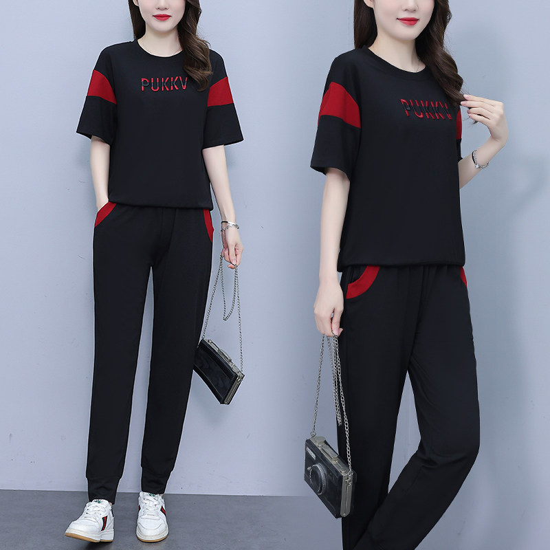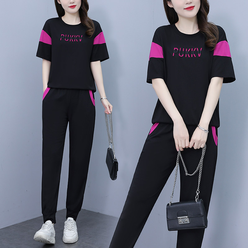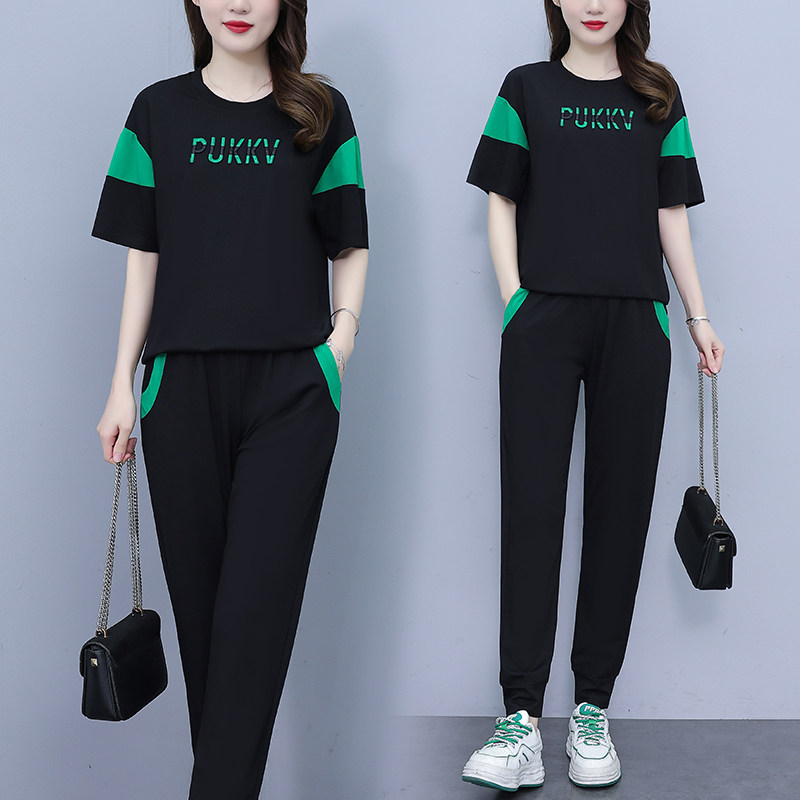 大码女装运动套装2026夏季新款胖mm短袖休闲时尚减龄长裤两件套潮