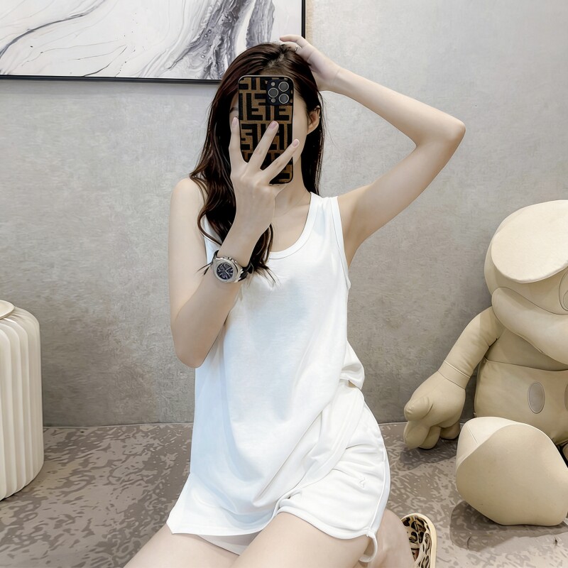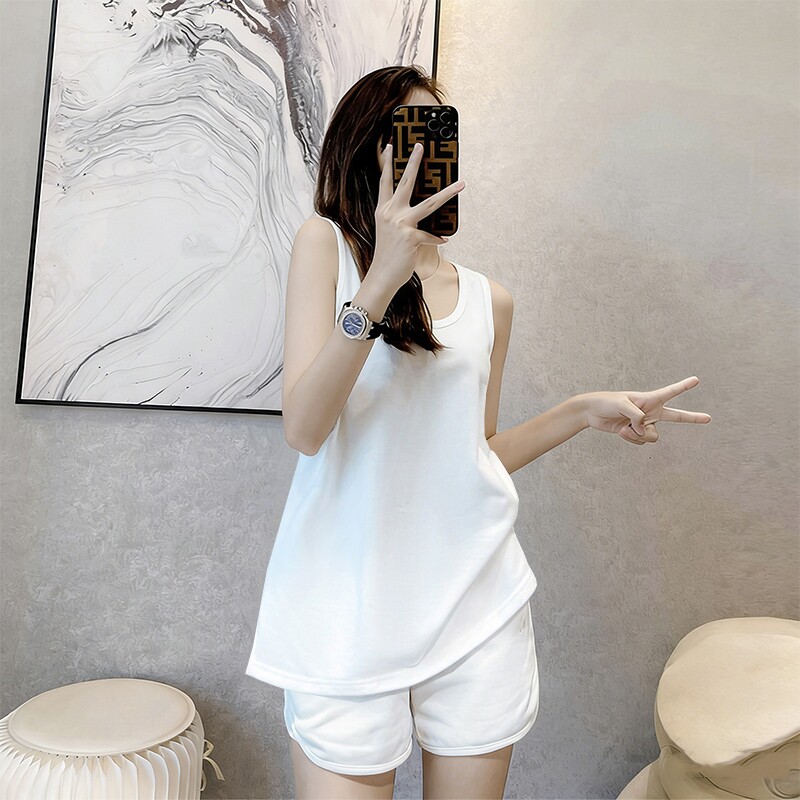 韩系少女白色背心睡衣女款2026新款夏天无袖上衣短裤家居服可外穿