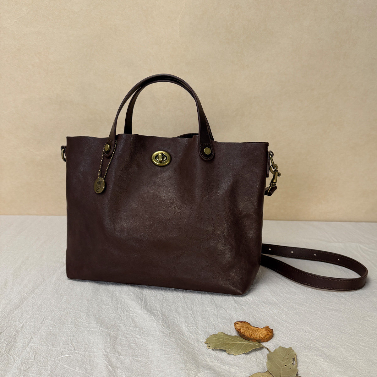 梧桐山上原生态植鞣头层牛皮大容量经典纯色大包手提单肩斜挎包