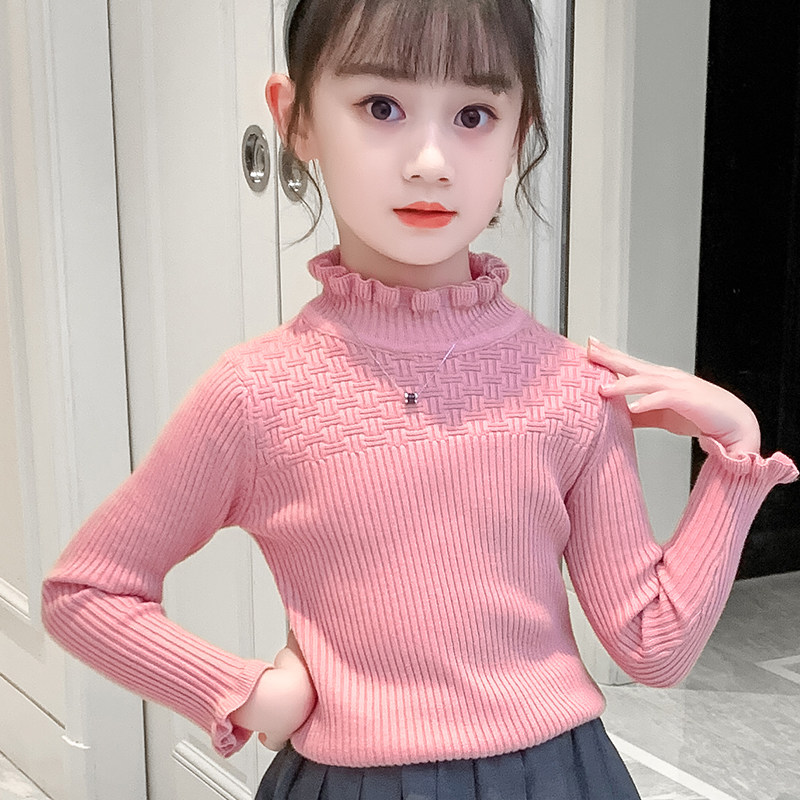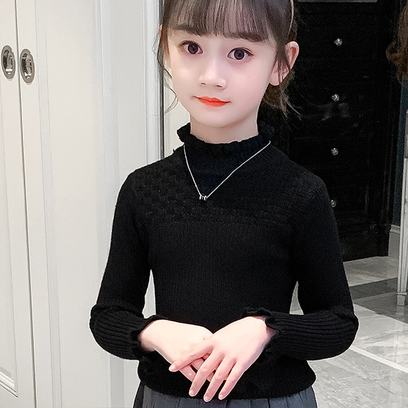 女童毛衣秋冬2025新款冬季儿童打底衫加绒中大童女孩白色针织内搭