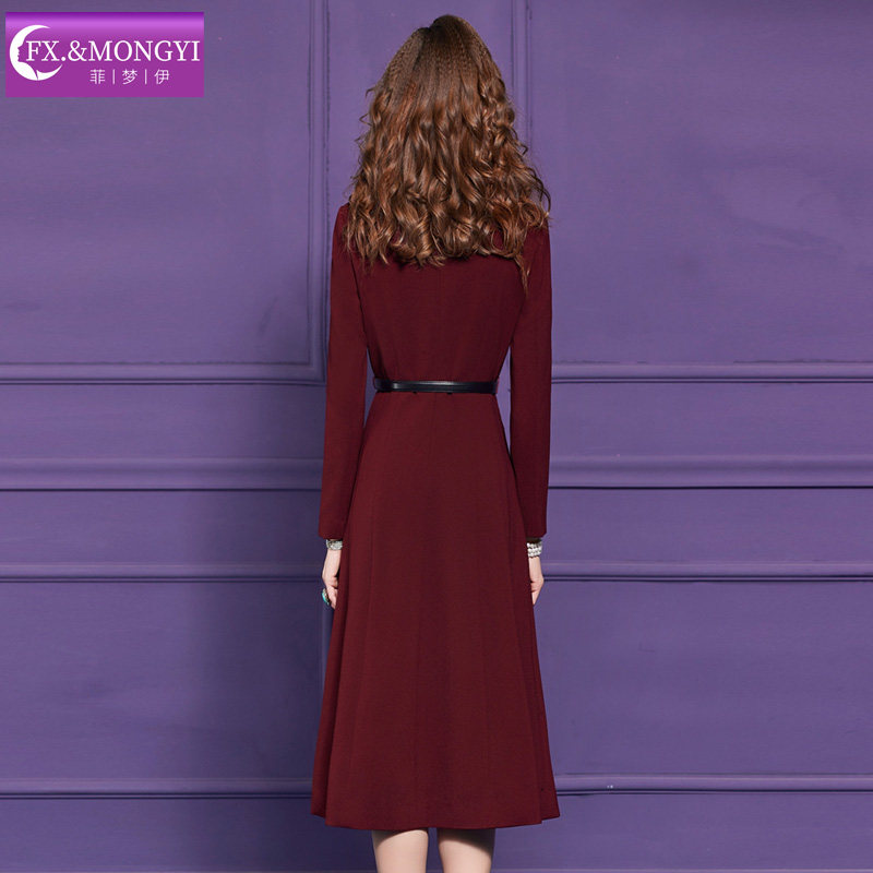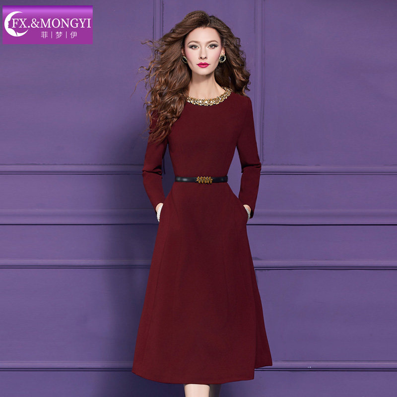 菲梦伊原创钉珠红色连衣裙女冬季高端轻熟风优雅气质中长款大摆裙