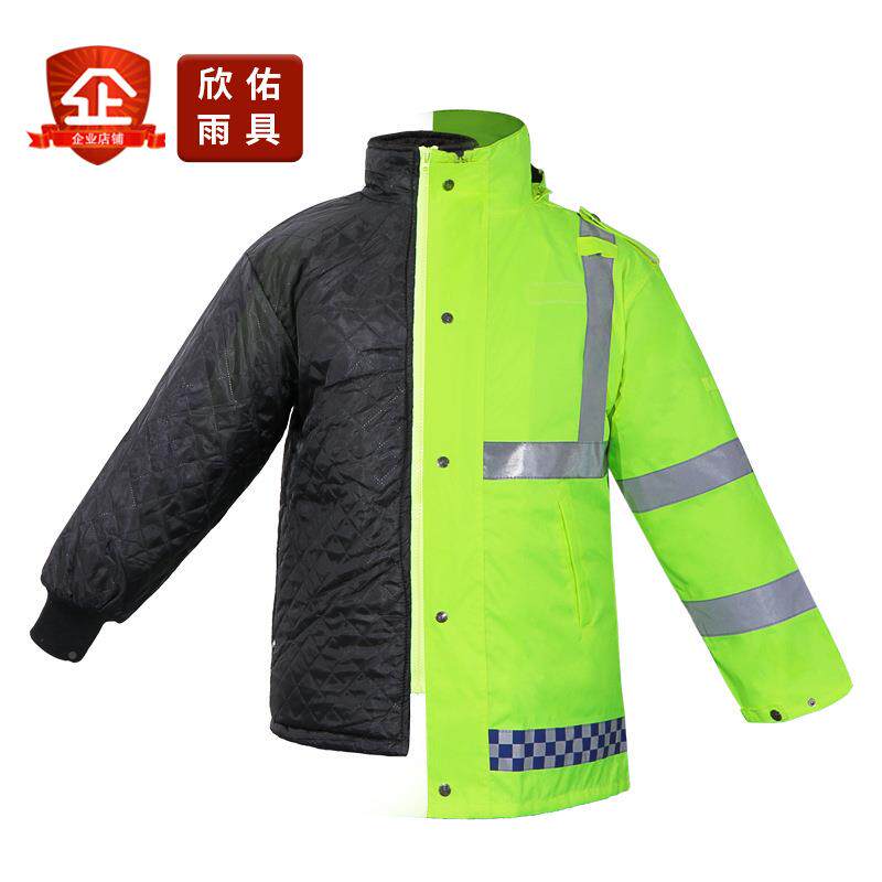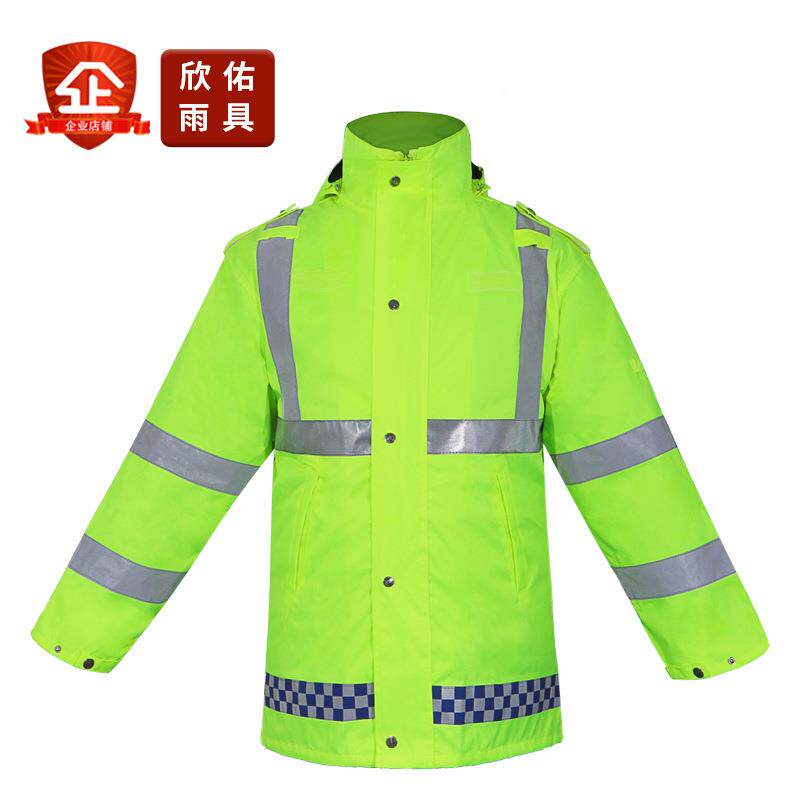 荧光执绿反光941棉衣勤加夜厚可脱卸棉衣印字反条便携光骑行安防