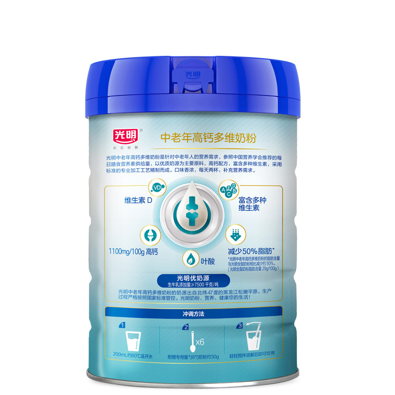 光明中老年高钙多维奶800g*2罐装老年高钙无蔗糖营养奶粉送爸妈礼