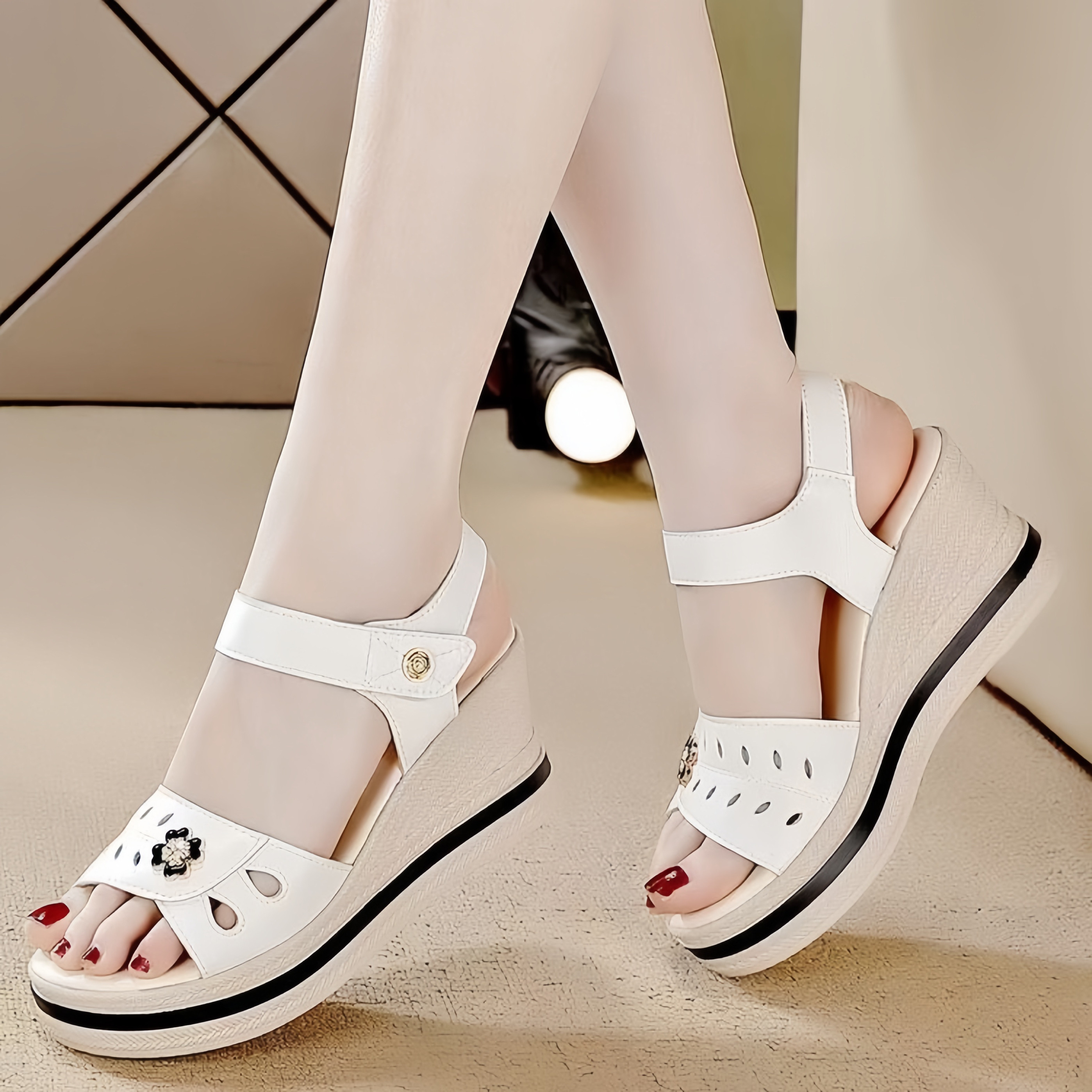 不累脚真皮一字扣凉鞋女夏2026新款百搭厚底坡跟休闲旅游女士凉拖
