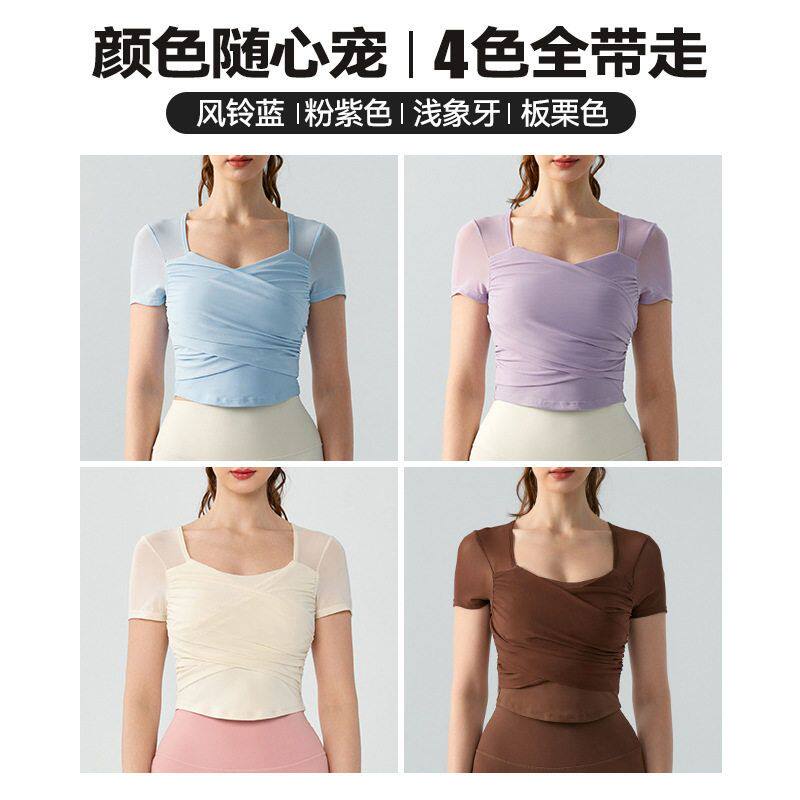 新款速干T恤运动女夏镂空短款短袖上衣杯瑜伽服半高级感美背性感