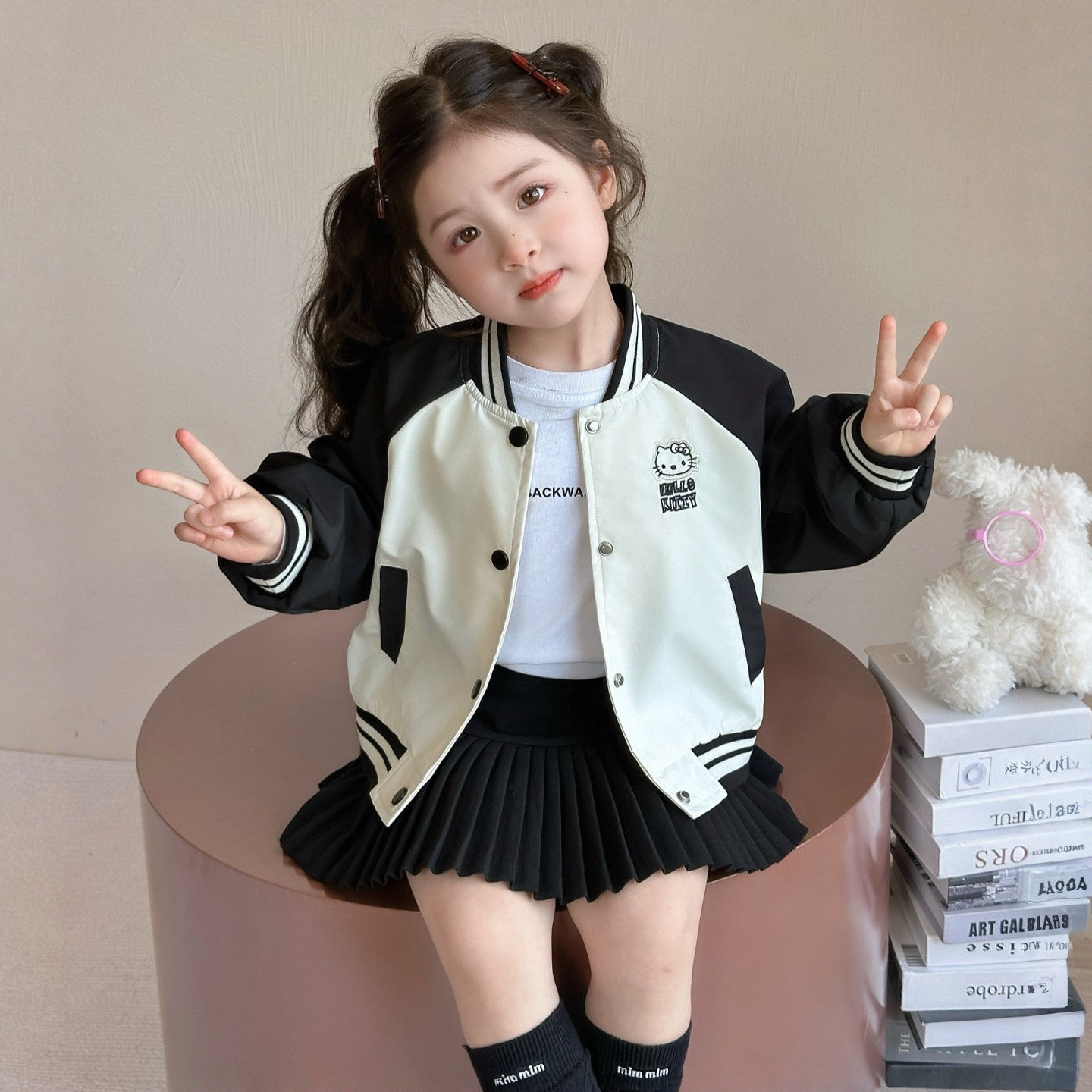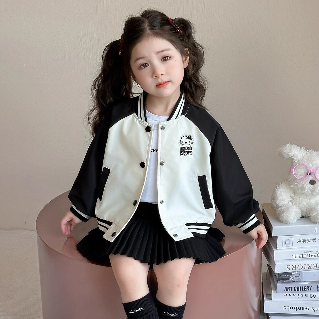 女童棒球服外套春秋2026新款儿童夹克猫咪女宝宝春季春装休闲上衣