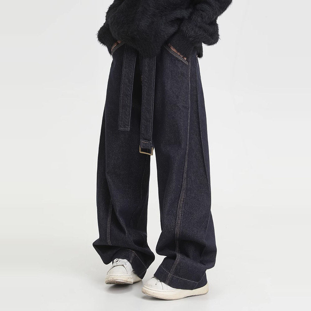 美式复古腰带牛仔裤男女款宽松廓形镰刀弯刀阔腿裤子baggy风穿搭