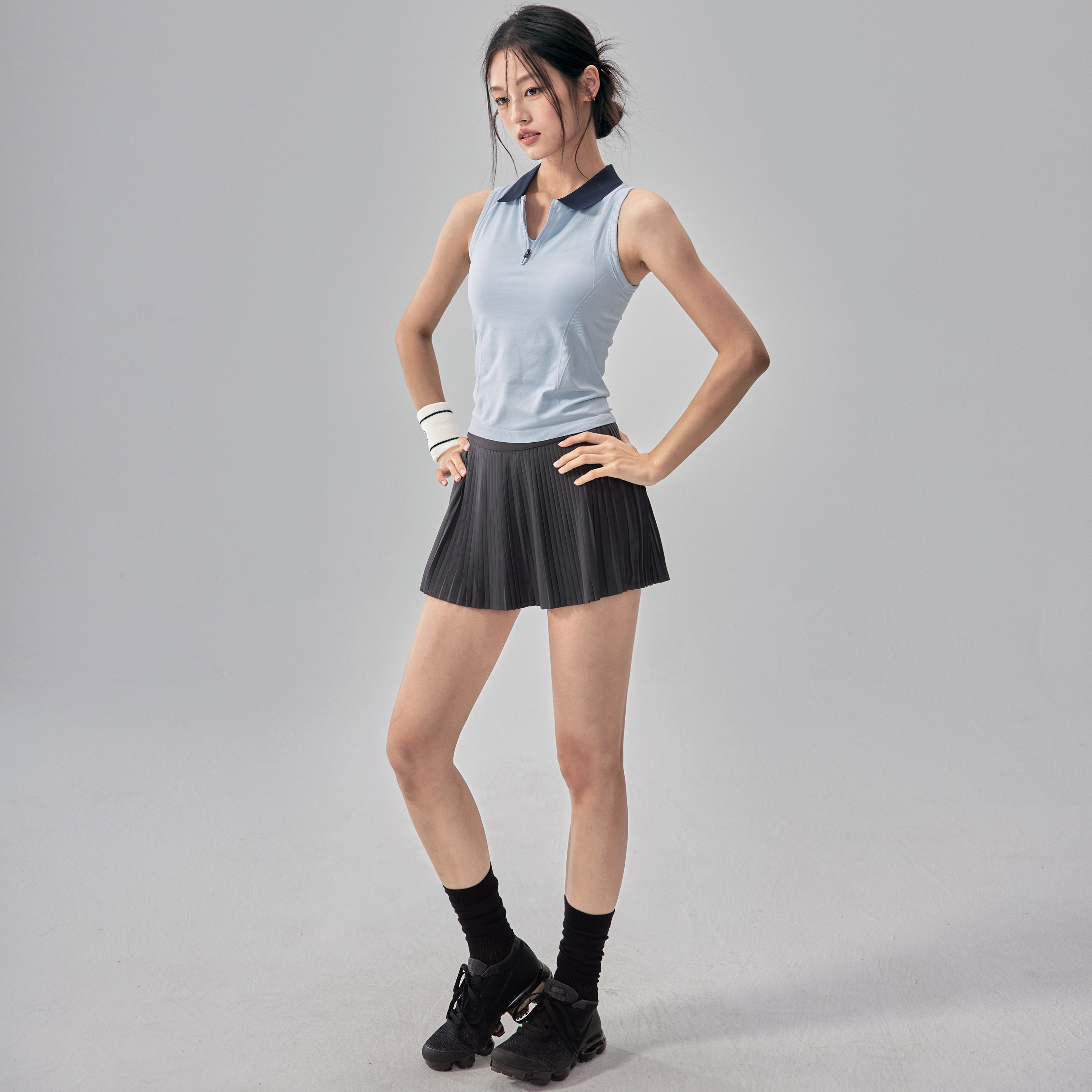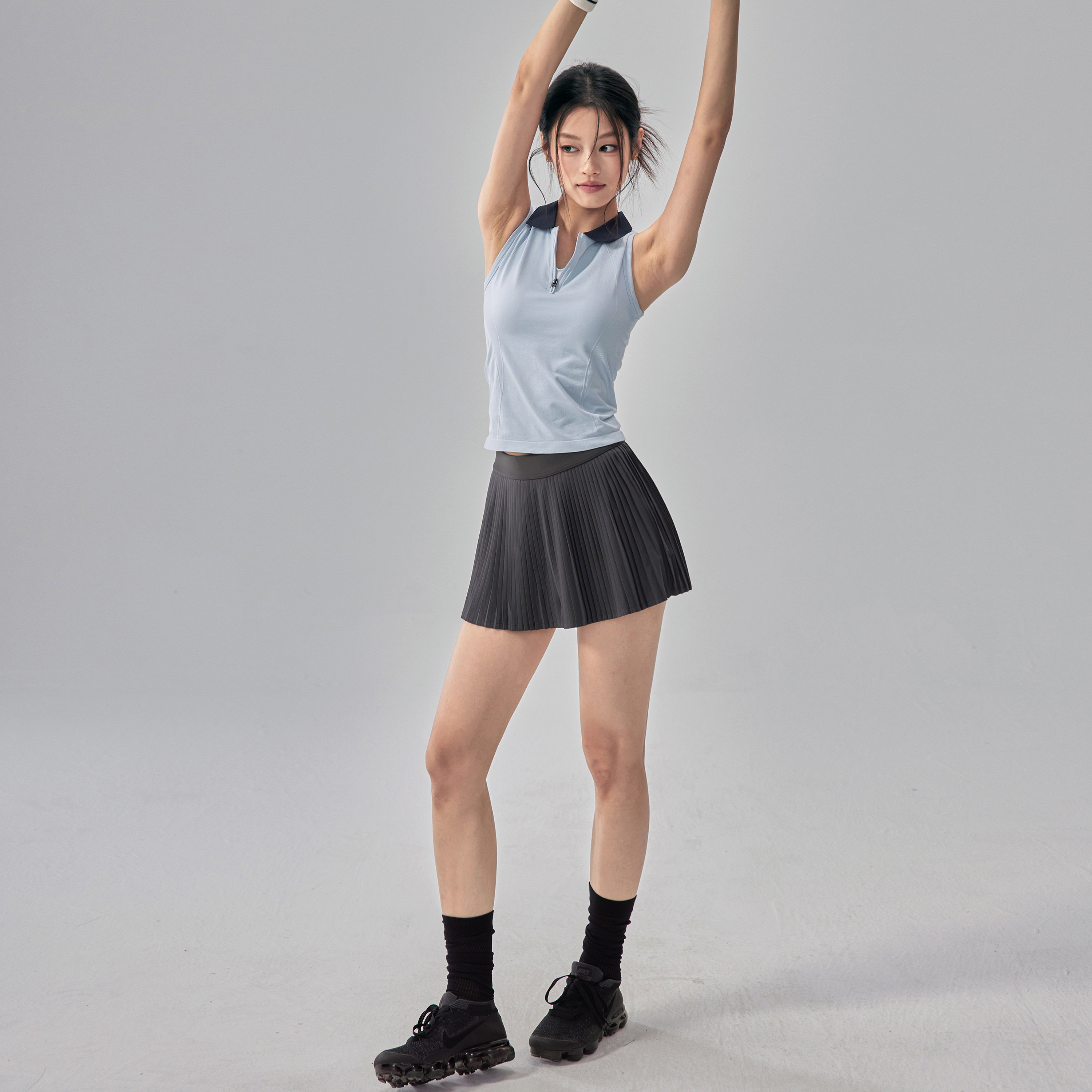 运动背心女带胸垫速干网球服套装polo健身瑜伽服上衣短裙两件套夏