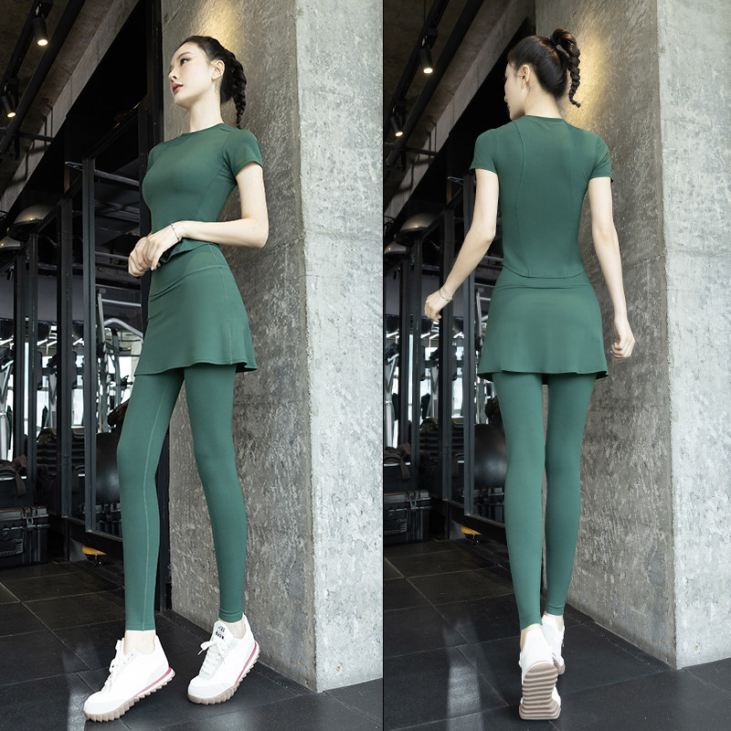 瑜伽服夏季网球裙裤套装女2026新款网红短袖速干假两件运动健身服