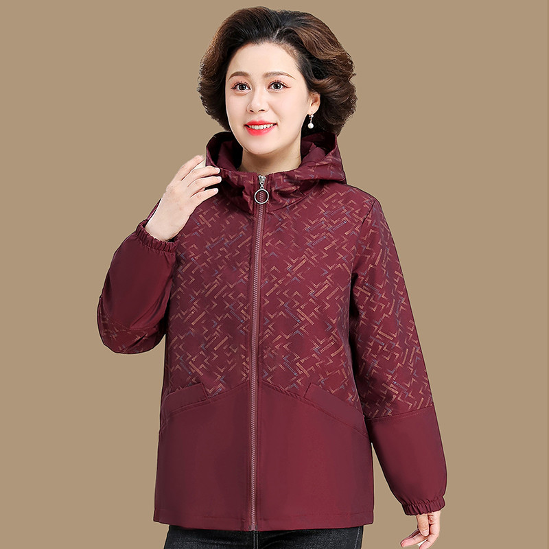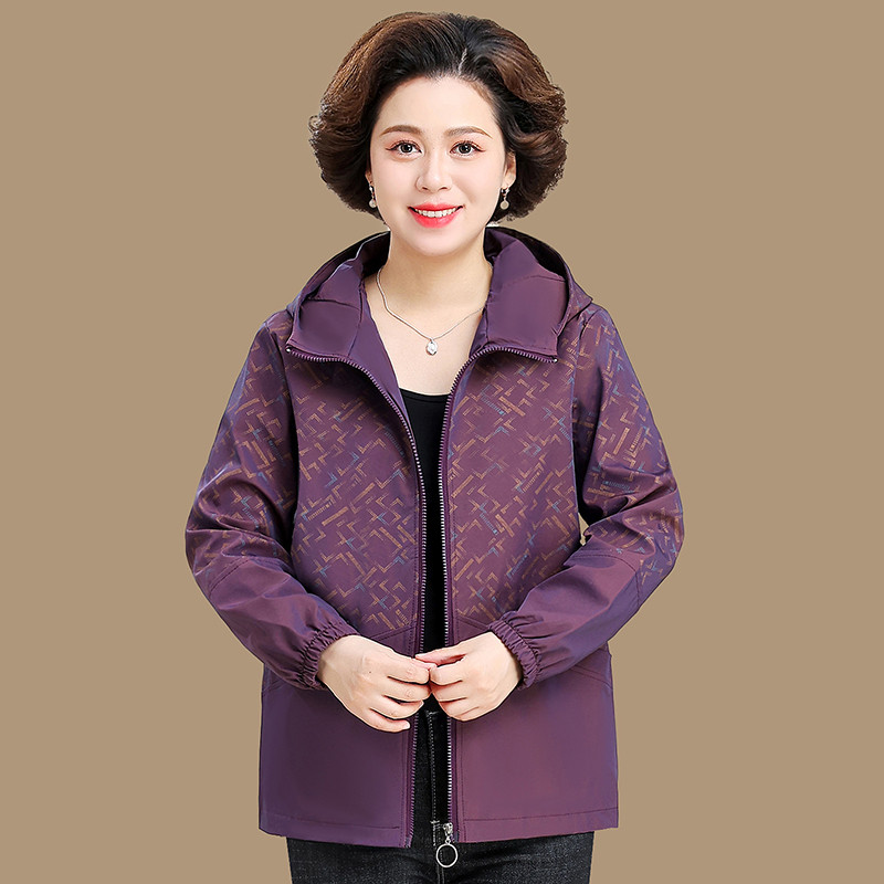 中年妈妈春装新款外套时尚洋气风衣中老年女春秋连帽夹克休闲上衣
