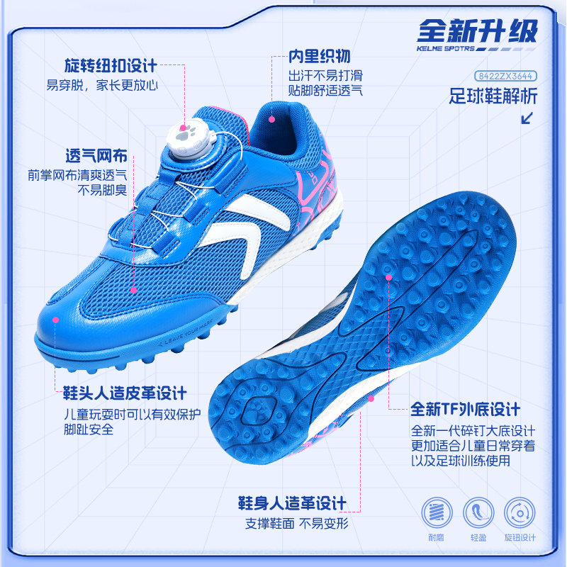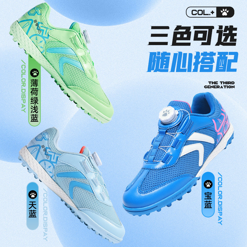 卡尔美儿童足球鞋男童TF碎钉训练专业小学生网面透气旋转钮扣球鞋