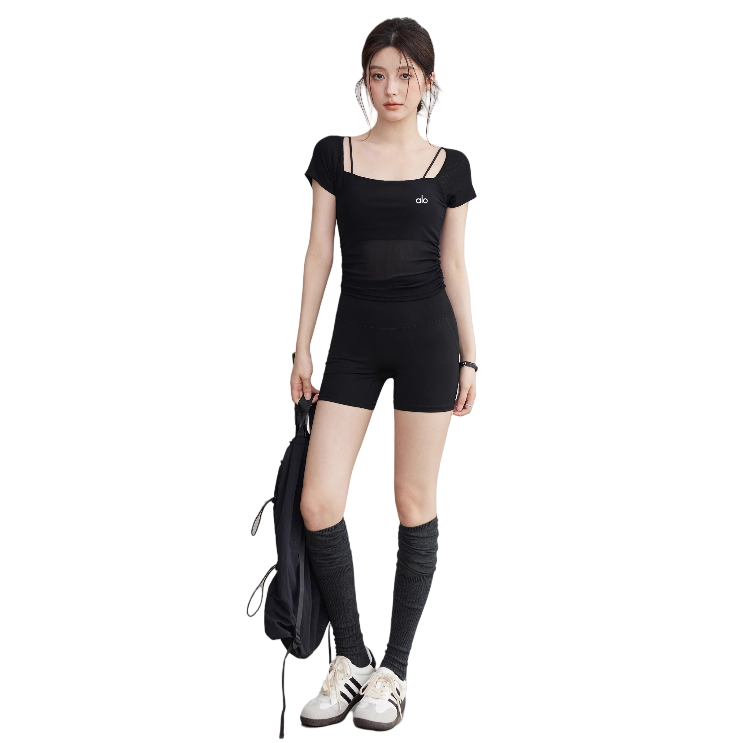 AIo瑜伽服女2025新款高级感网纱运动上衣性感显瘦健身短袖训练服