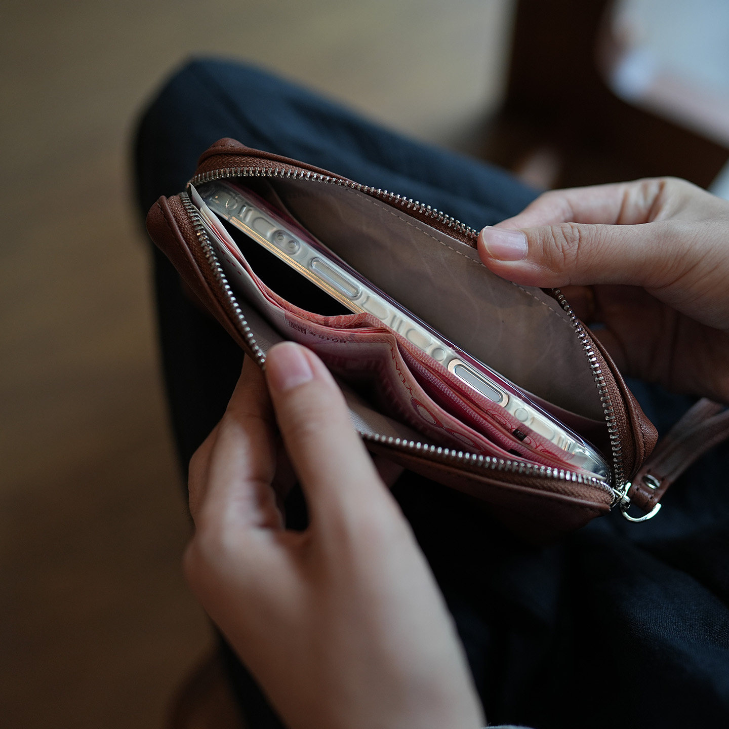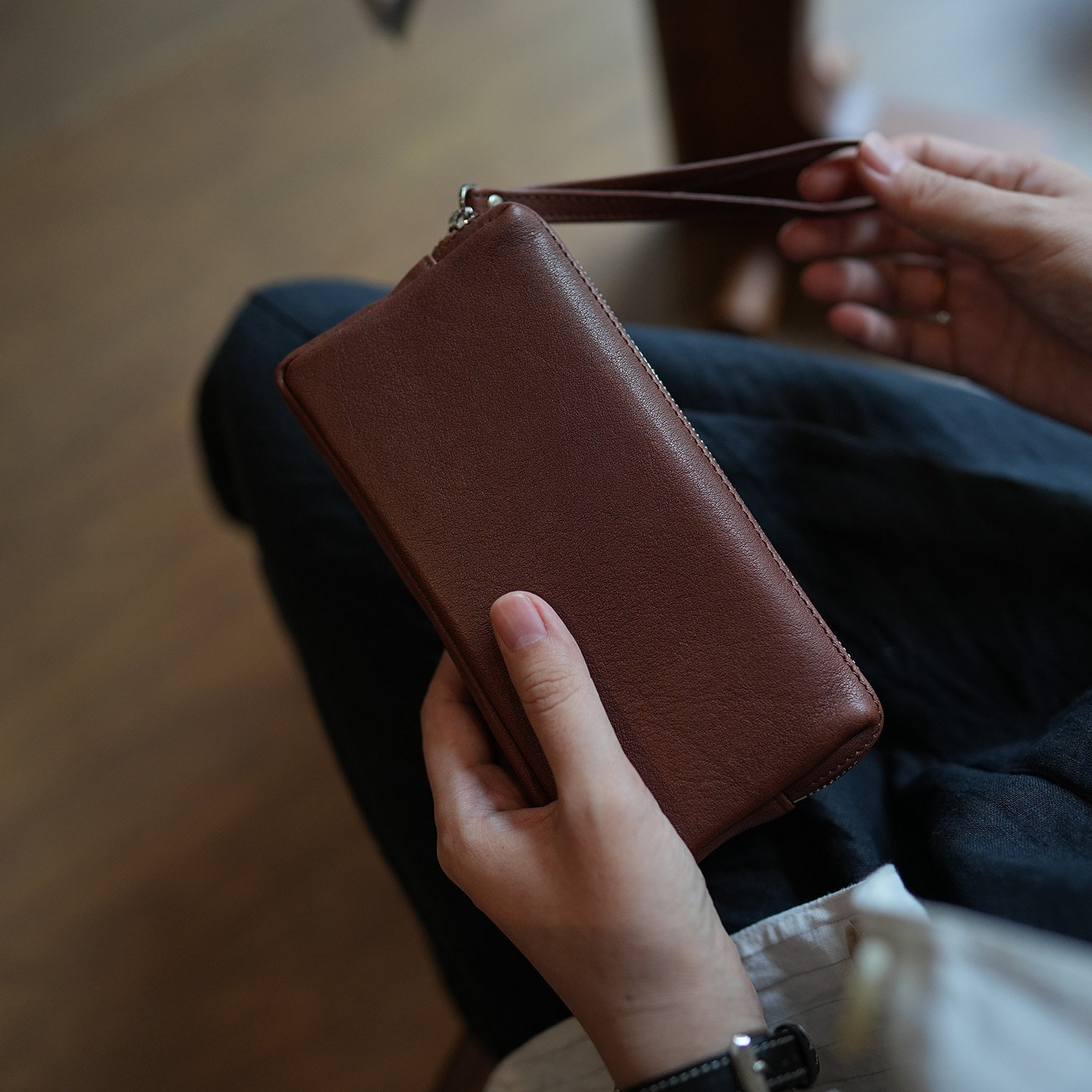鹿小姐头层牛皮简约高级感大容量钱夹真皮手机收纳包长款手拿钱包