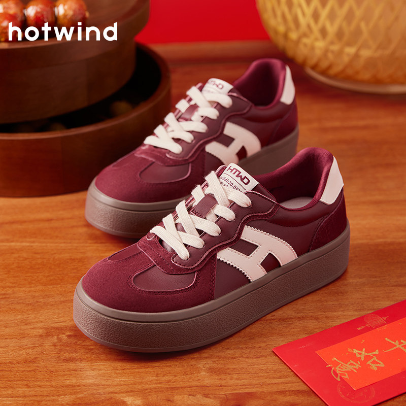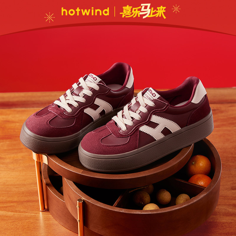 热风厚底德训鞋女款2026年春季新款复古红色增高女鞋百搭休闲鞋子