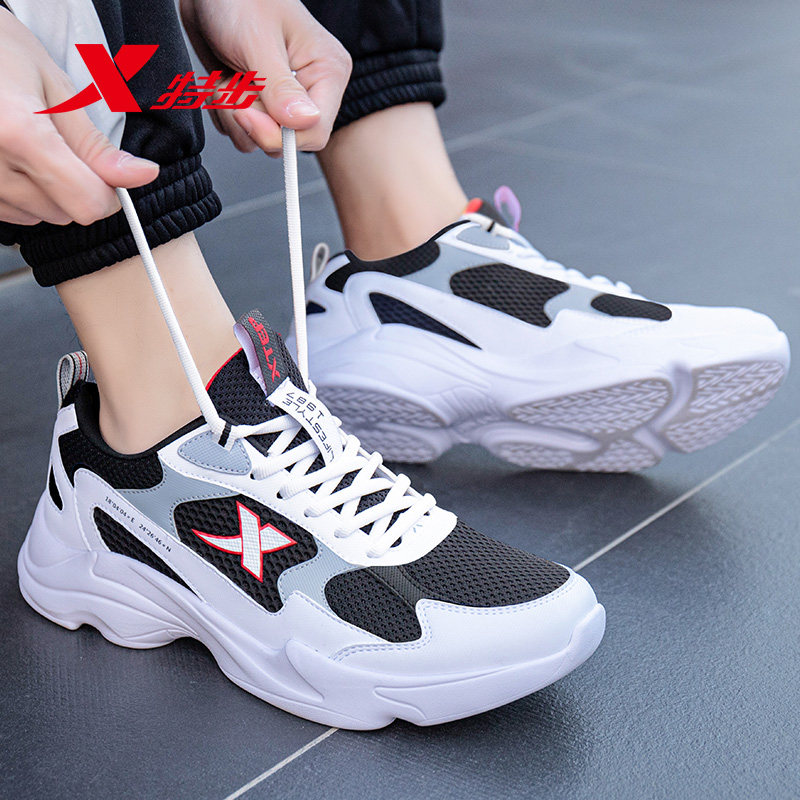特步官方旗舰店男鞋夏季网面透气运动鞋男软底网鞋男款老爹鞋跑鞋