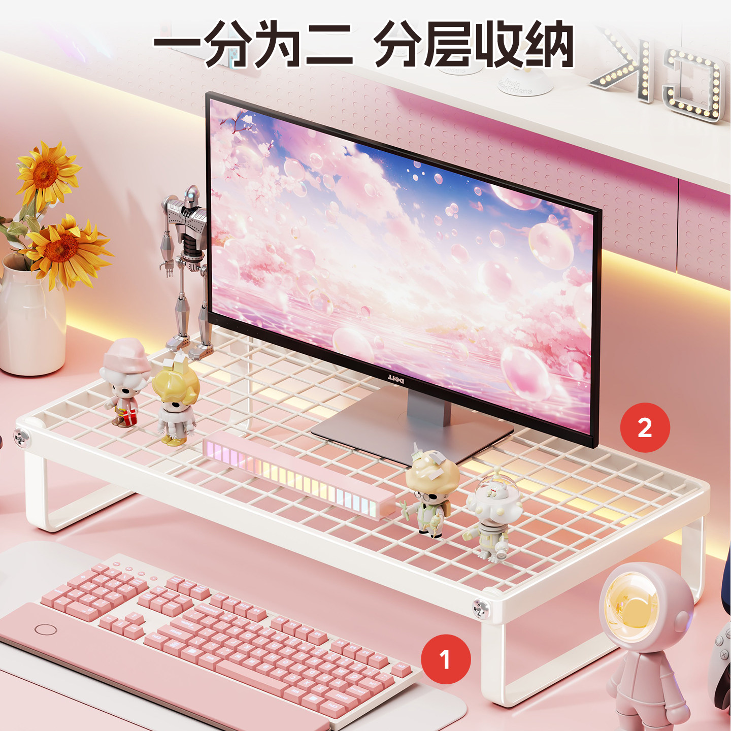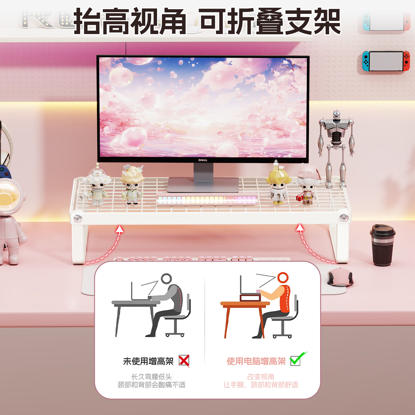 笔记本电脑支架桌面增高台支架托散热底座烧烤架可折叠支撑架悬空宿舍加高显示器铁艺散热架支架子镂空白色