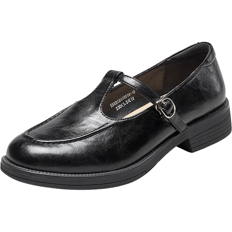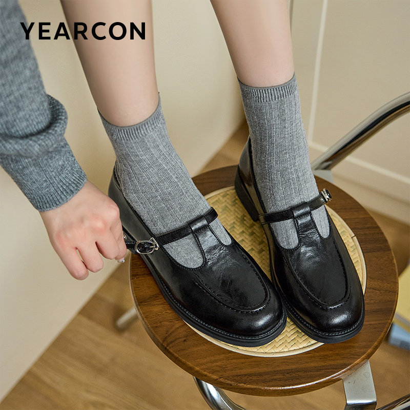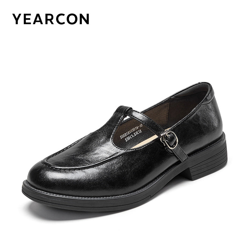 意尔康女鞋春秋季学院风乐福鞋T型玛丽珍单鞋粗跟小皮鞋配裙子