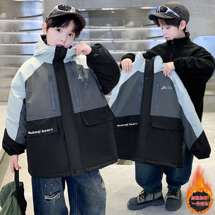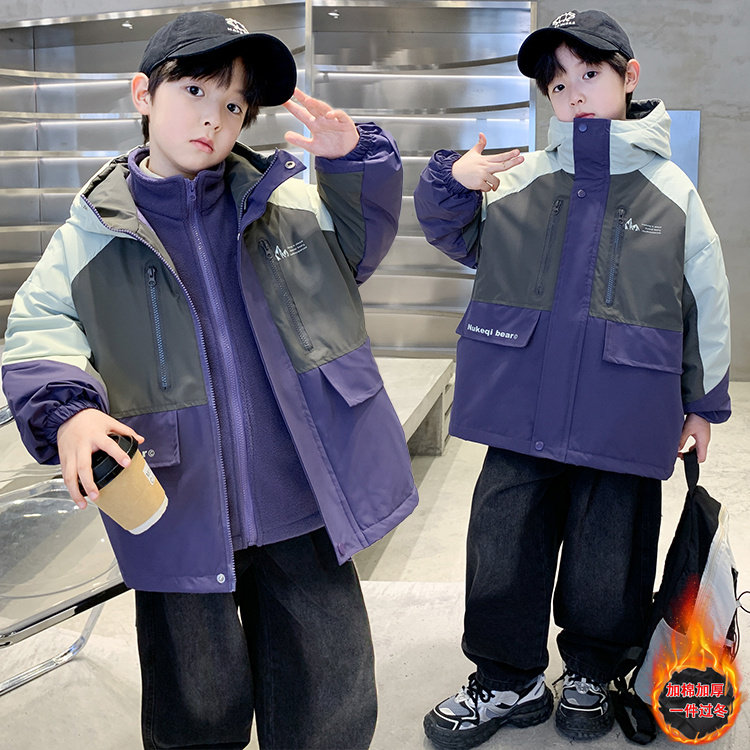 男童外套2025秋冬新款中大儿童夹棉加厚三合一冲锋衣男孩春秋薄款