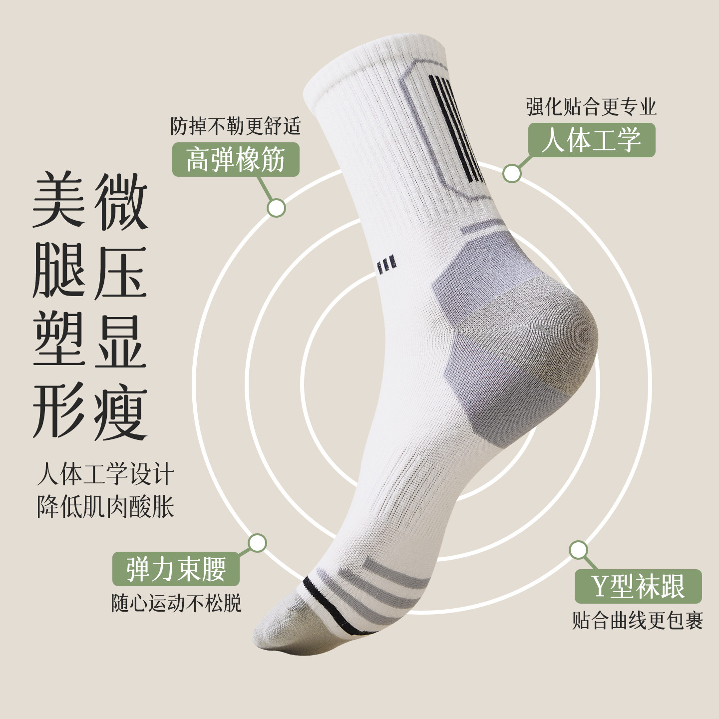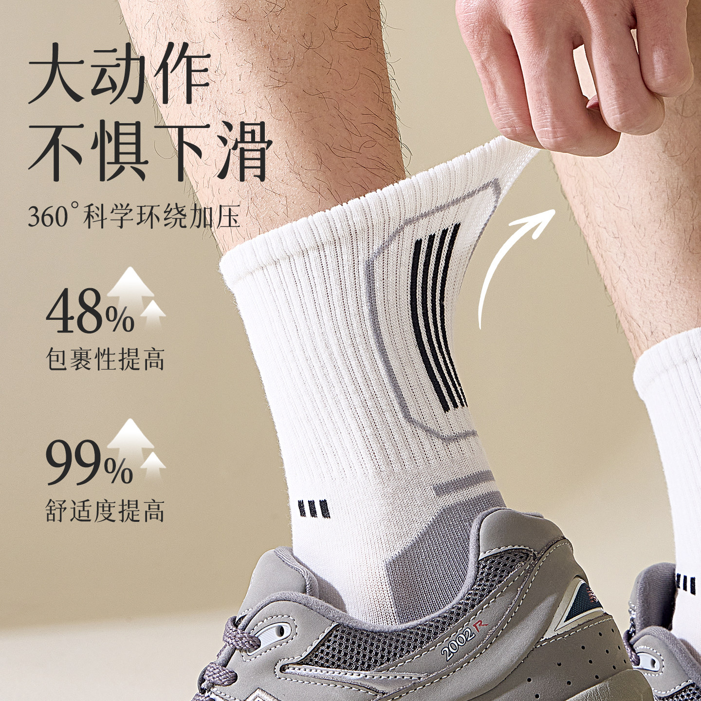 袜子男款中筒袜秋季棉袜马拉松专业跑步袜防滑耐磨白色篮球运动袜
