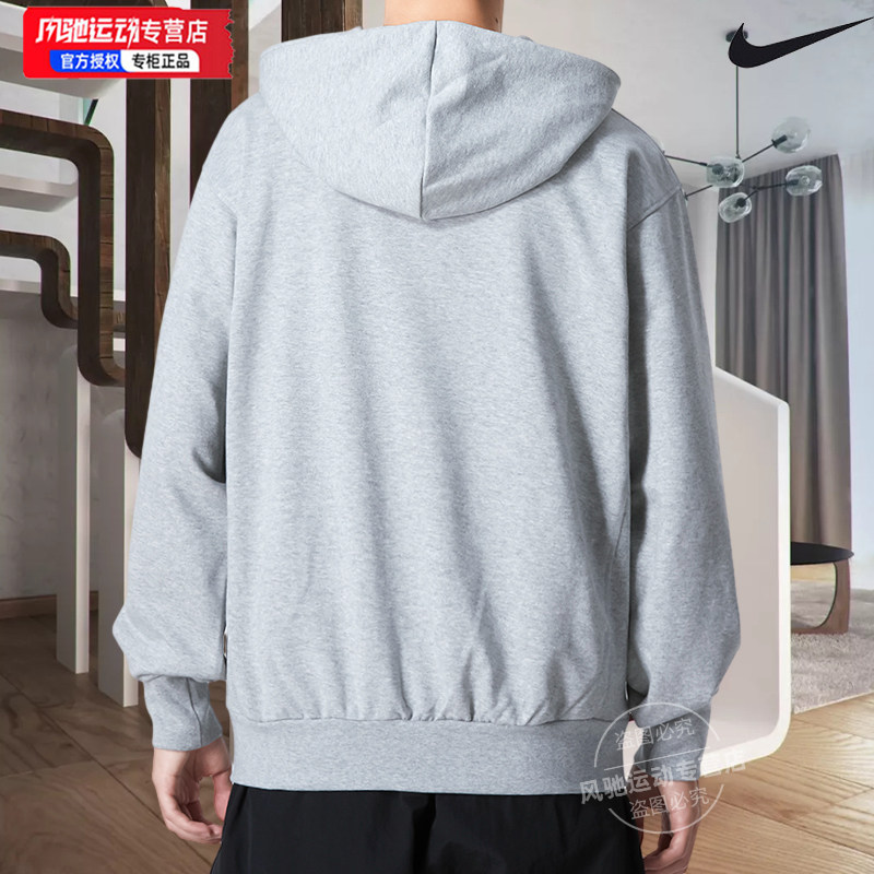耐克灰色外套男款2026春季新款篮球针织连帽衫运动服 DQ5817-063