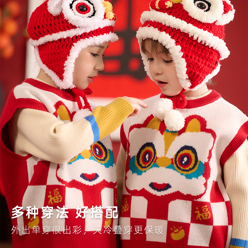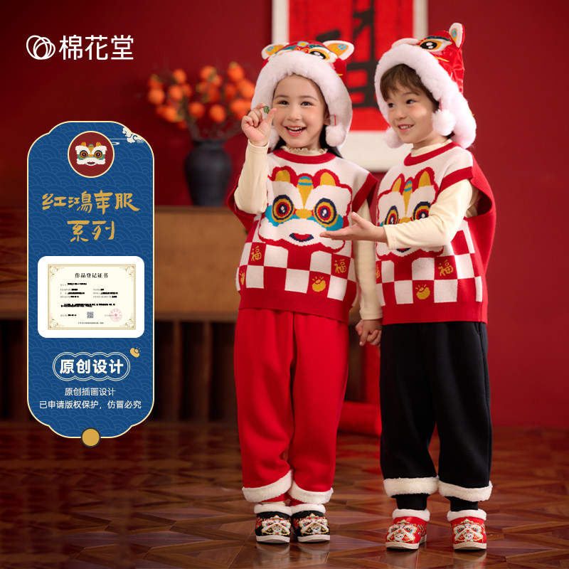 棉花堂儿童马甲童装男童拜年服女童毛衣抗静电宝宝红色过年服背心