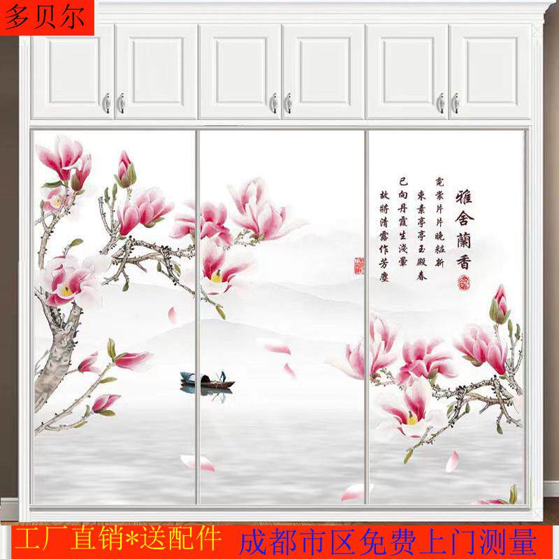 定制衣柜推拉门钢化玻璃衣橱简约滑动壁柜高光实木彩绘雕刻移门卧