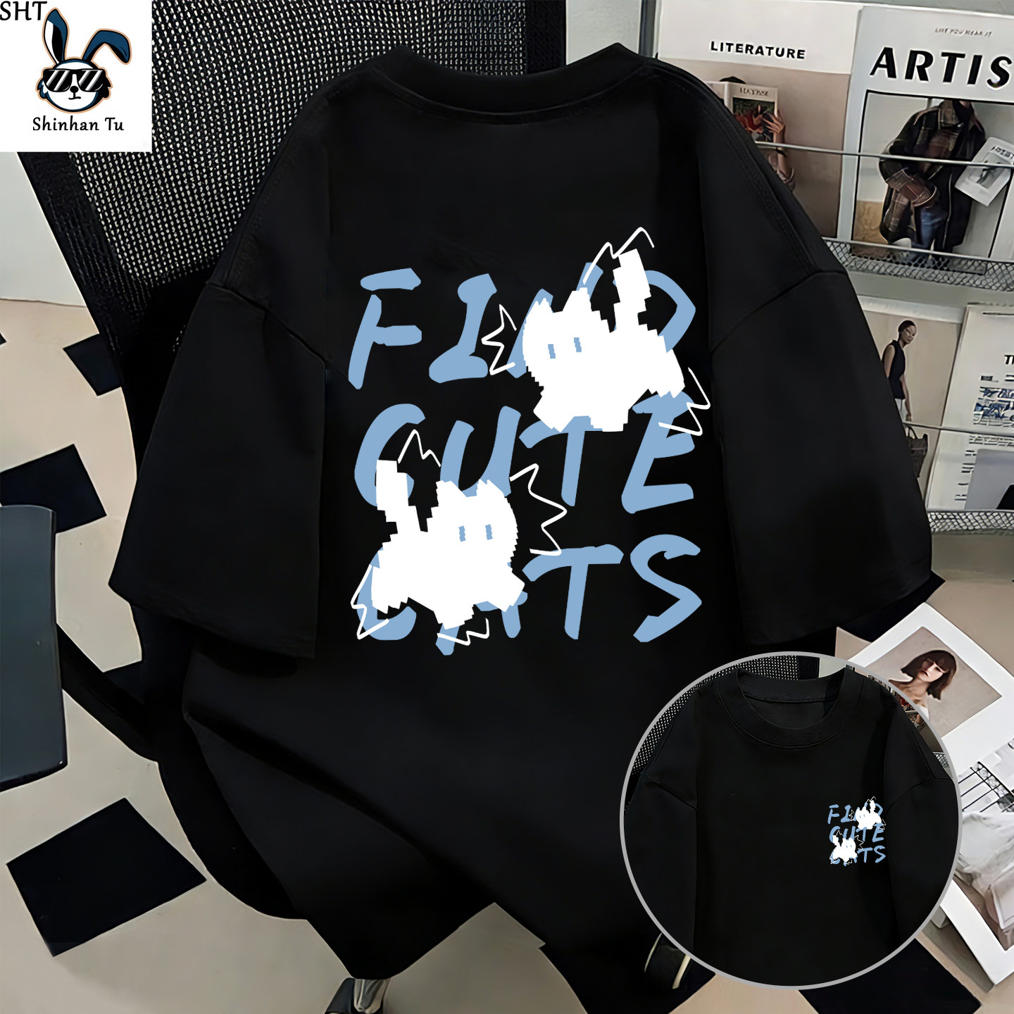 闪电猫咪短袖T恤男女2026夏季爆款潮流设计感青少年半袖宽松上衣
