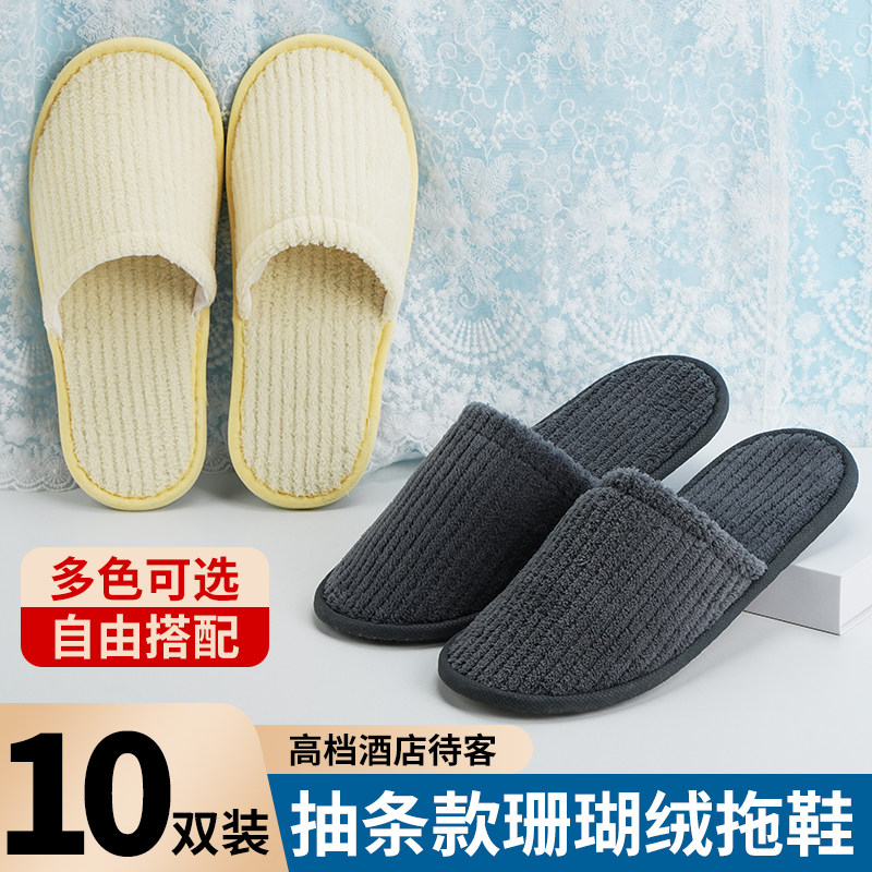 10双装一次性拖鞋待客居家酒店加厚防滑室内民宿旅行便携秋冬家用