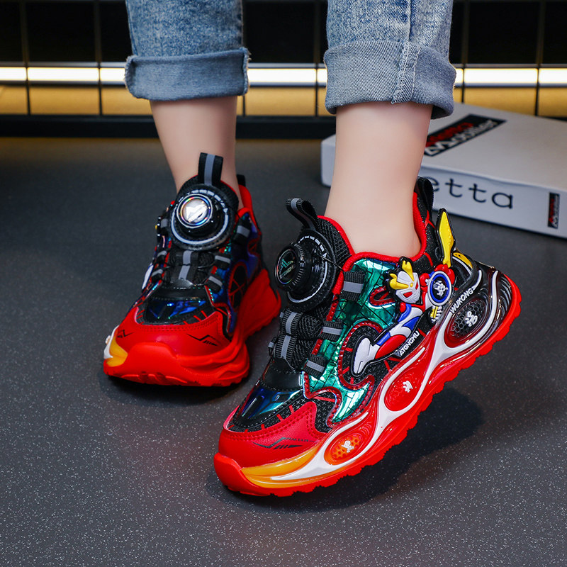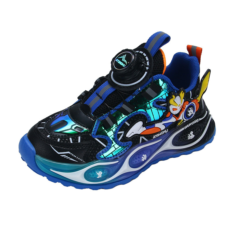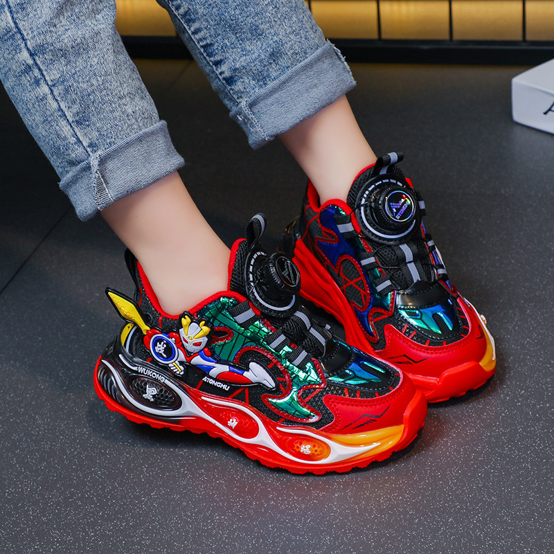 儿童网面跑步鞋男孩奥特曼鞋子软底男童运动鞋透气跑鞋旋转扣童鞋
