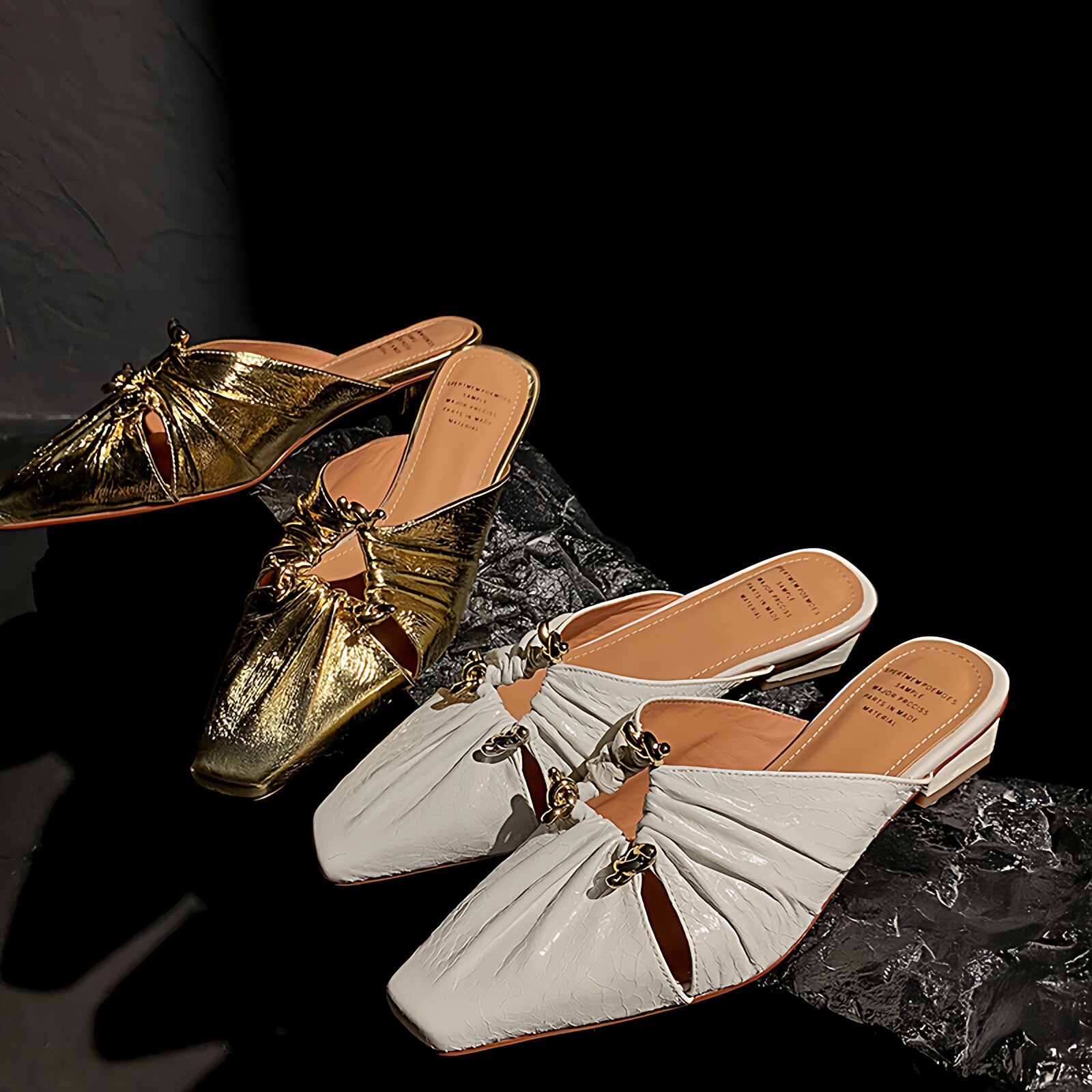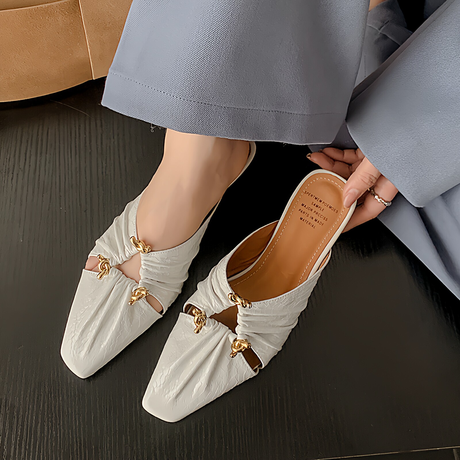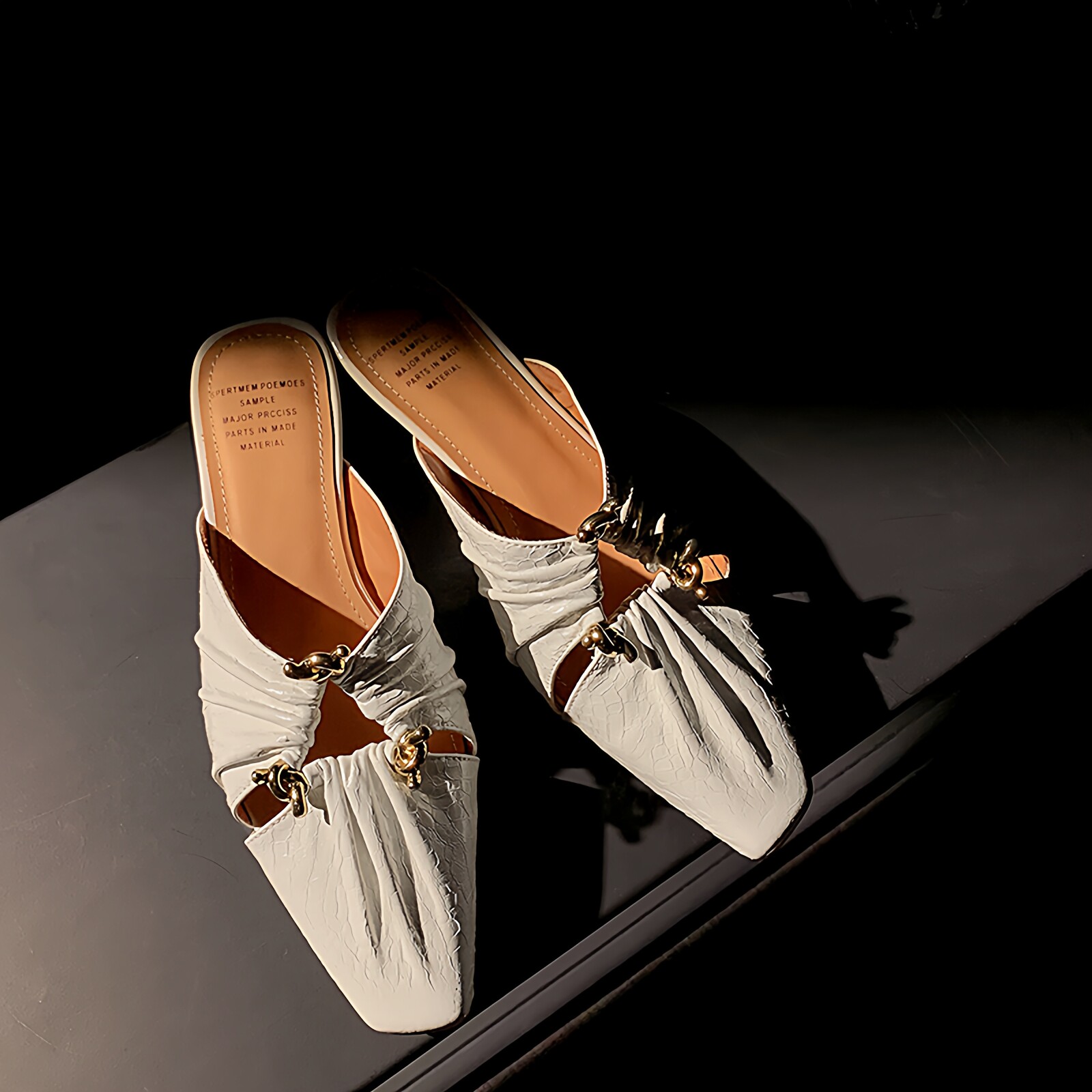 内外全皮 Simcoe气质高档牛皮真皮中跟凉拖鞋半拖女鞋子单鞋方头