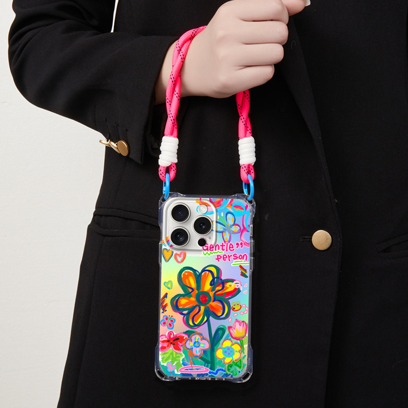 适用iphone17promax手机壳带挂绳新款女苹果14pro小众高级感13炫彩15斜挎可背透明xs手提腕带16时尚11涂鸦