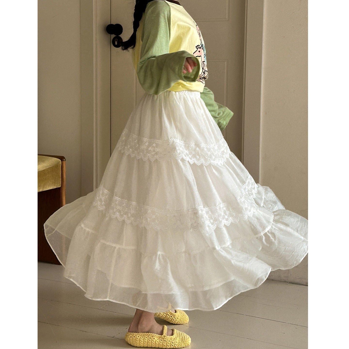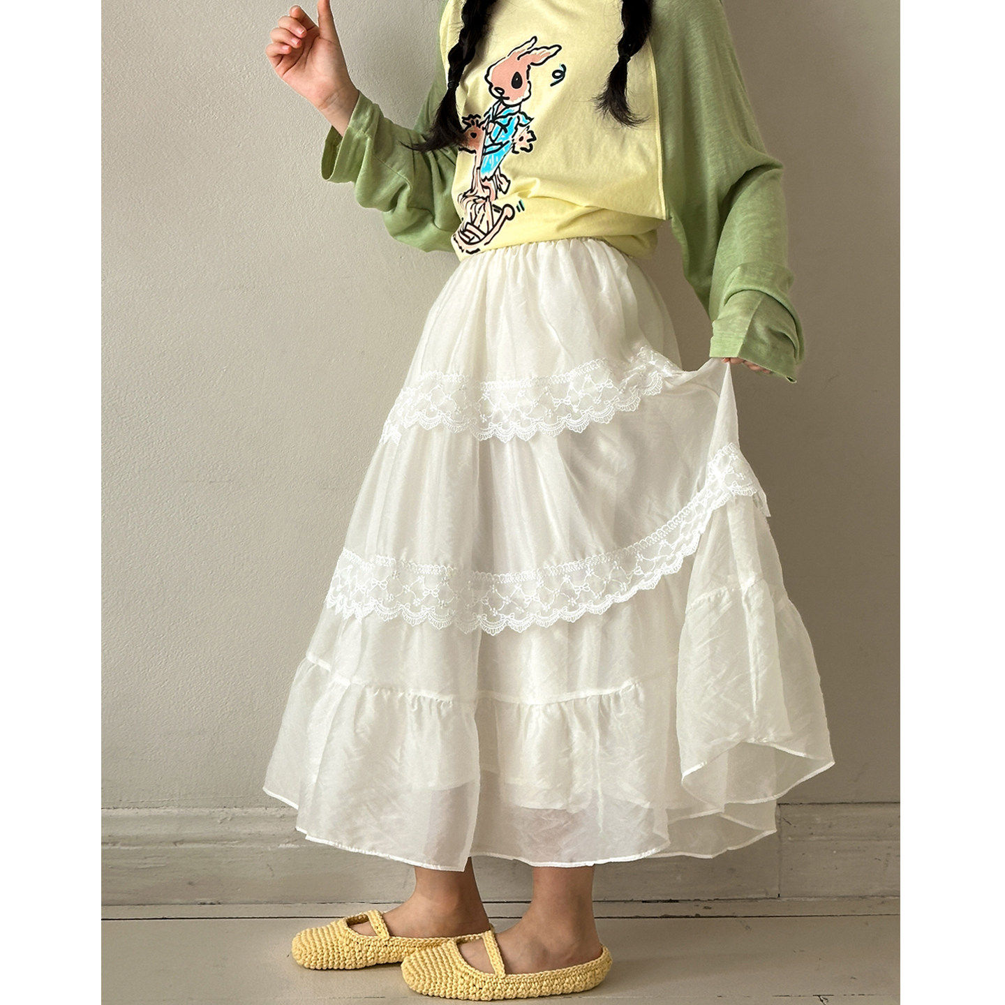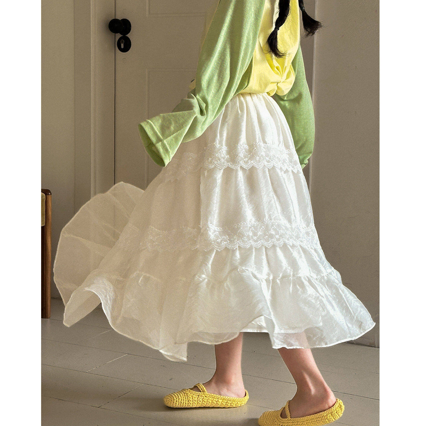 女童半身裙春装新款女大童网纱初中生超好看白色春季儿童公主裙子