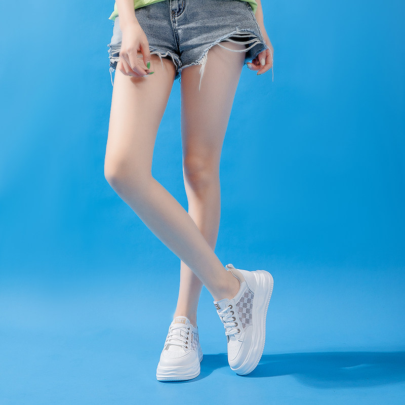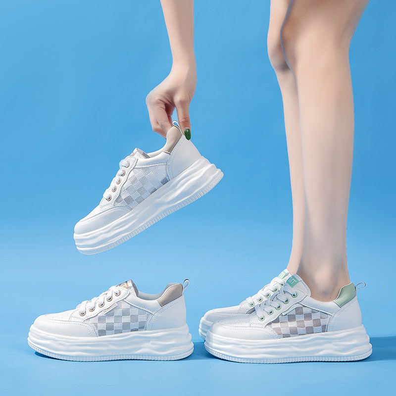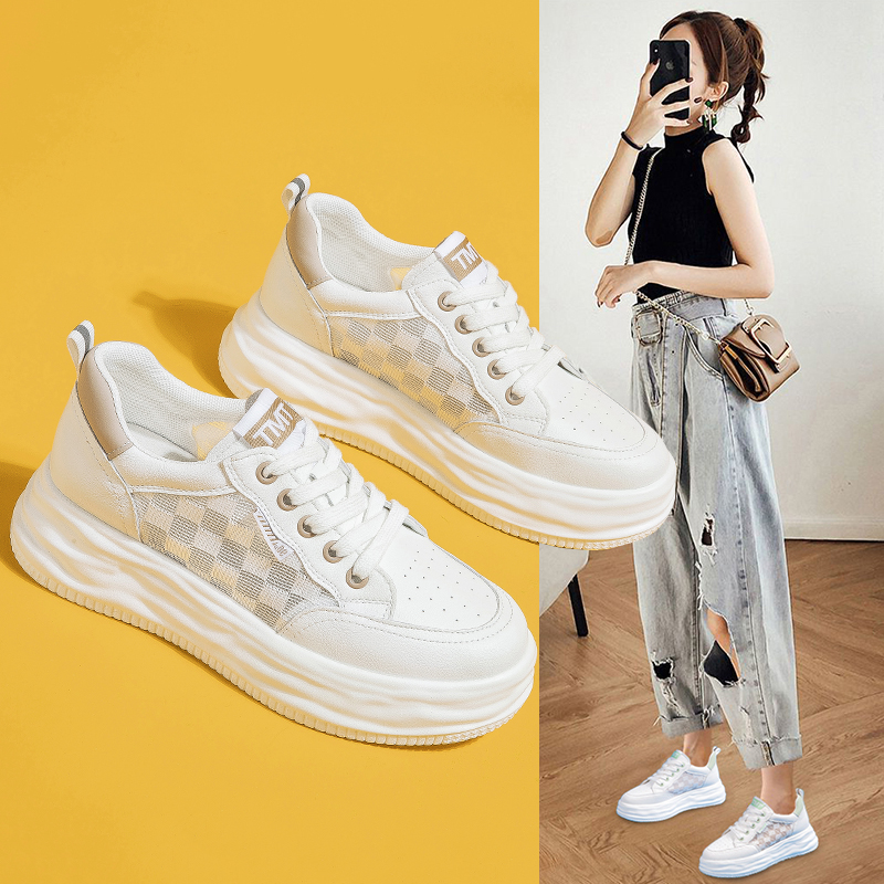 网面小白鞋女2026新款夏季真皮休闲透气板鞋百搭厚底增高ins单鞋