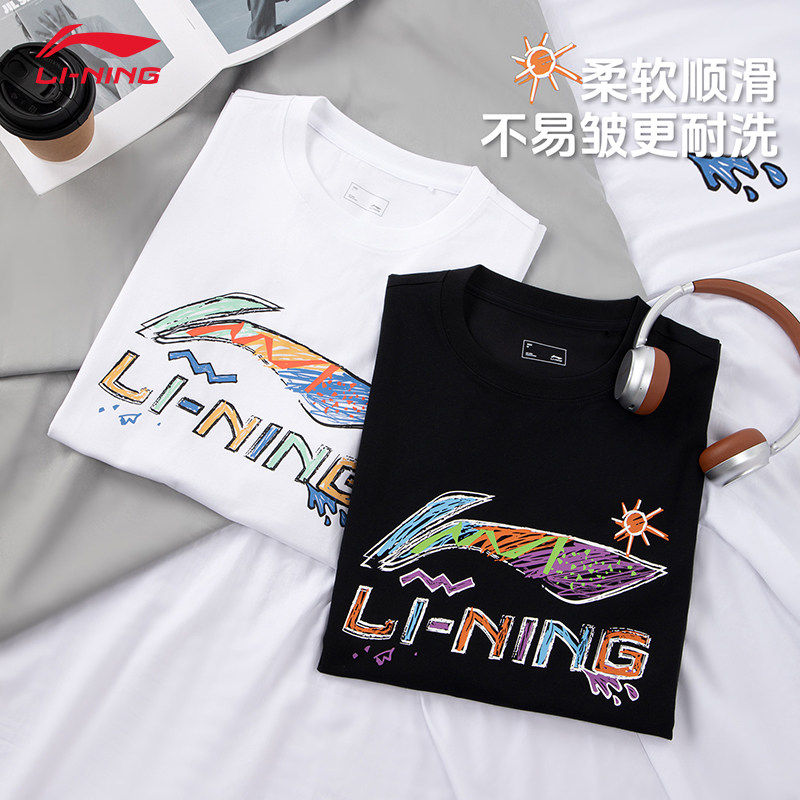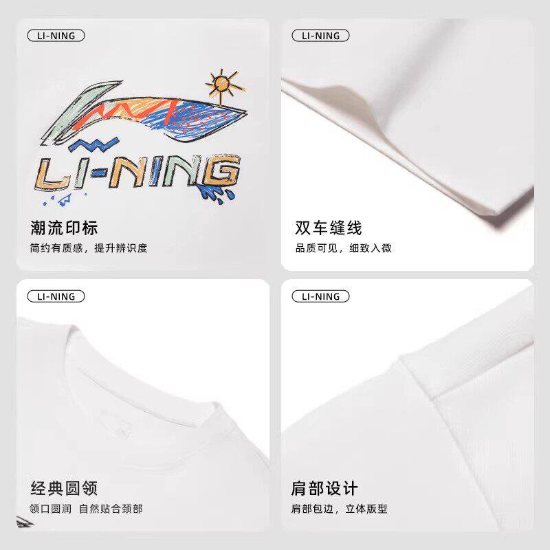 李宁短袖男款夏季新款透气宽松休闲白文化衫青少年时尚潮流T恤衫