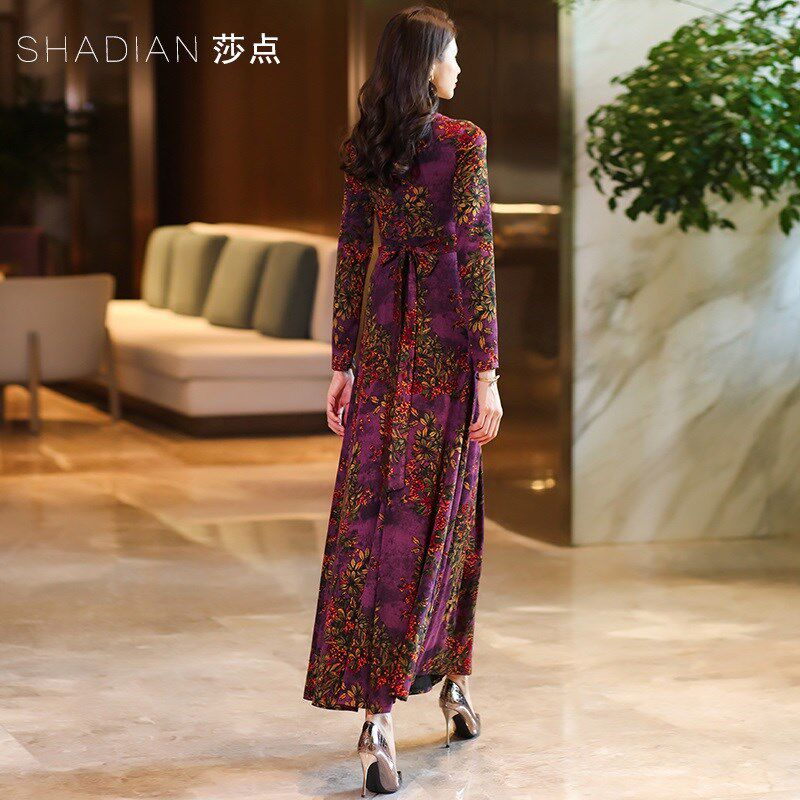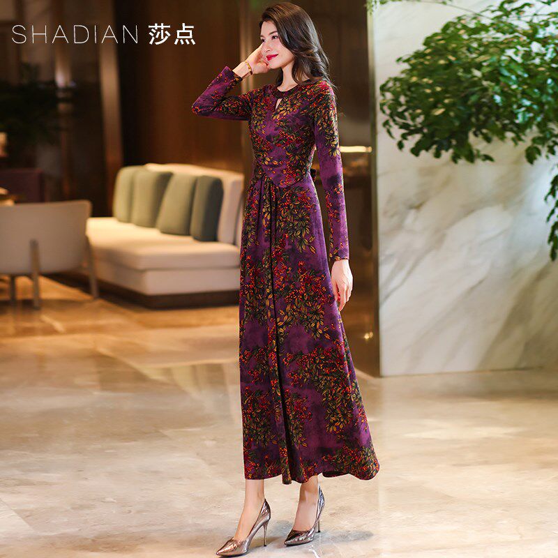 2025早春新款j长袖连衣裙V领修身显瘦减龄长裙高贵气质长款大摆裙