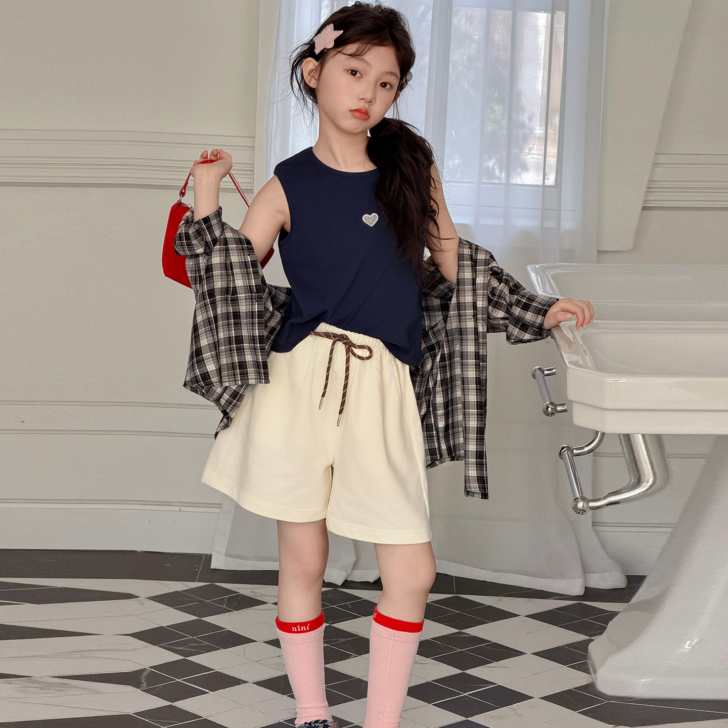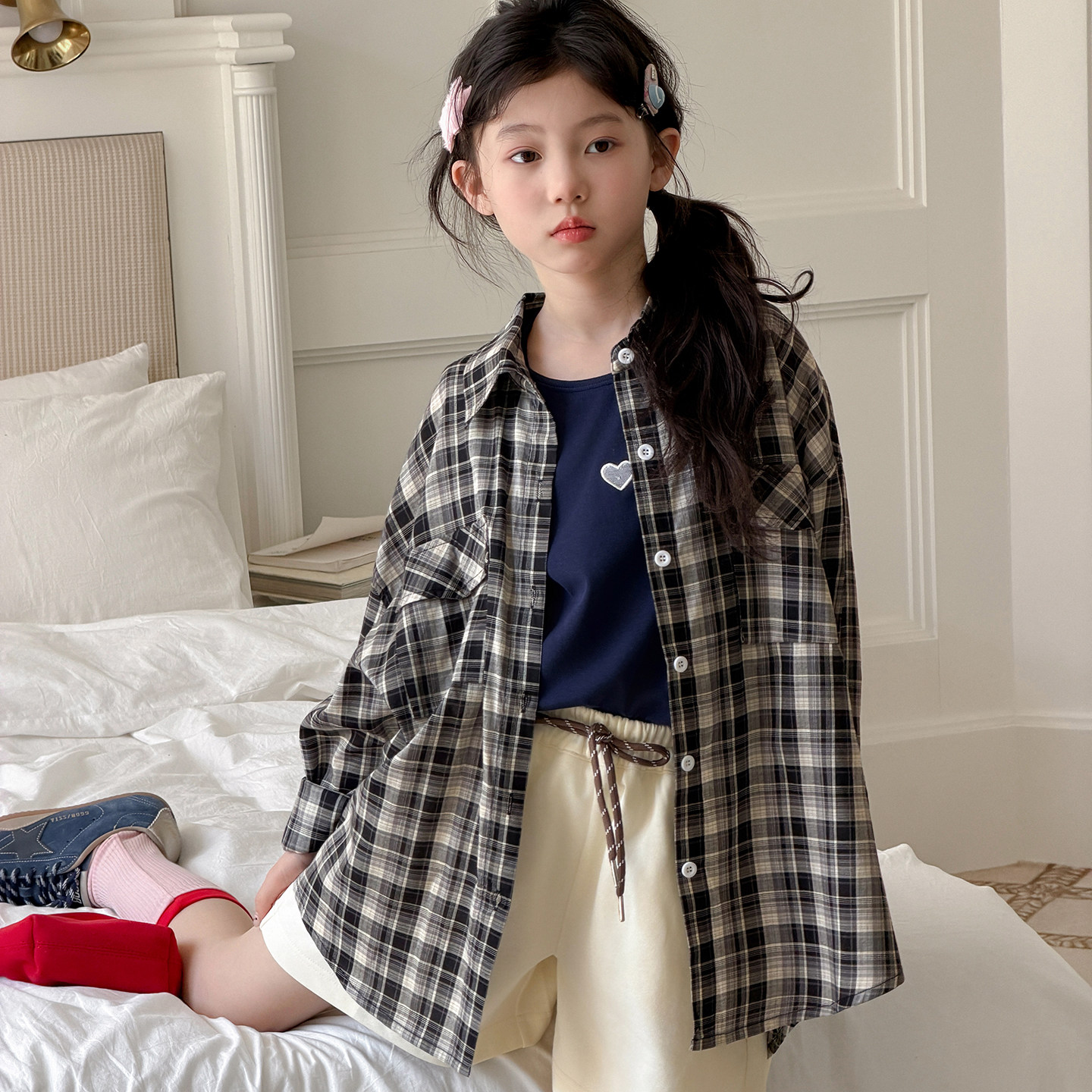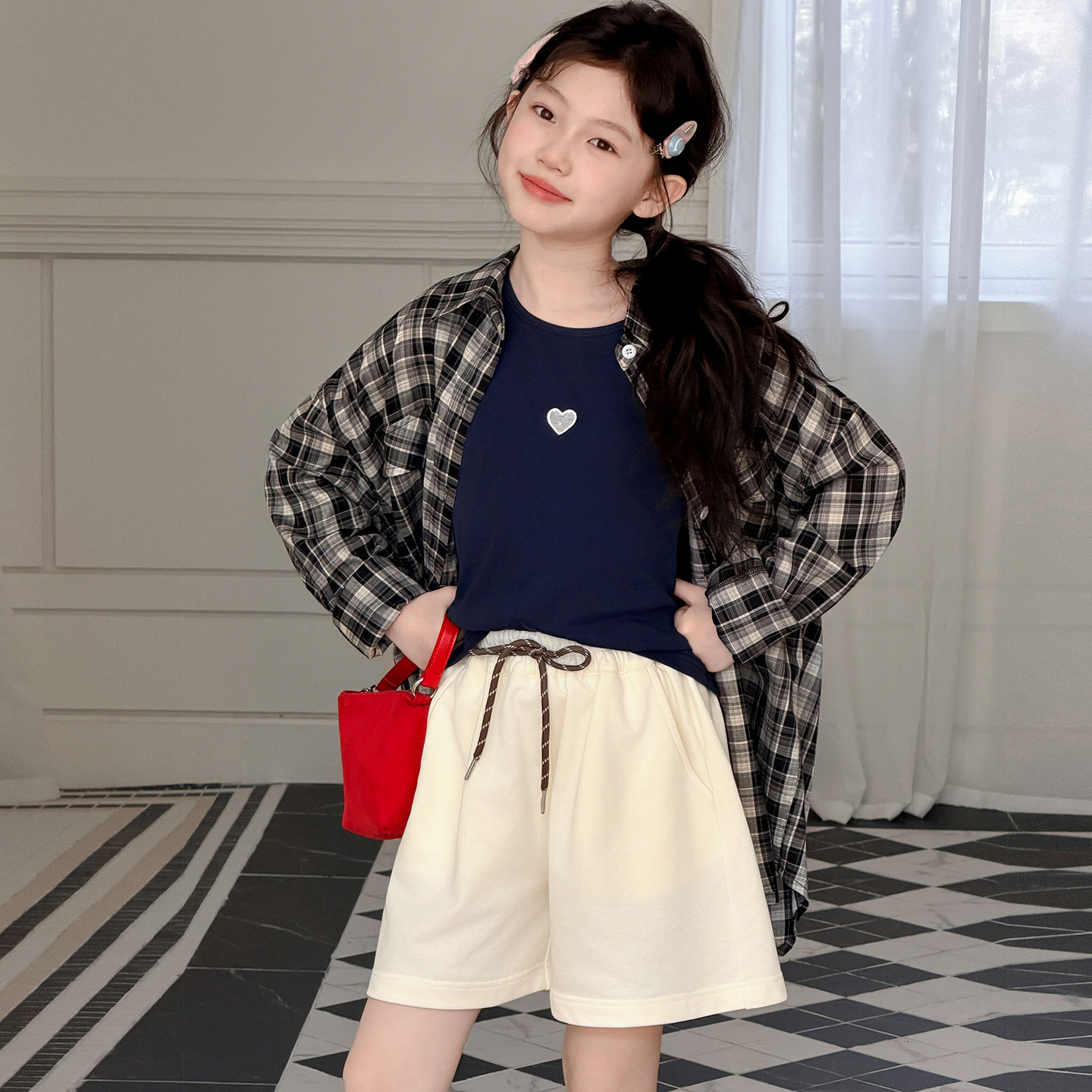 女童防晒衬衫长袖夏季2026新款儿童上衣女孩大童春装薄款格子套装
