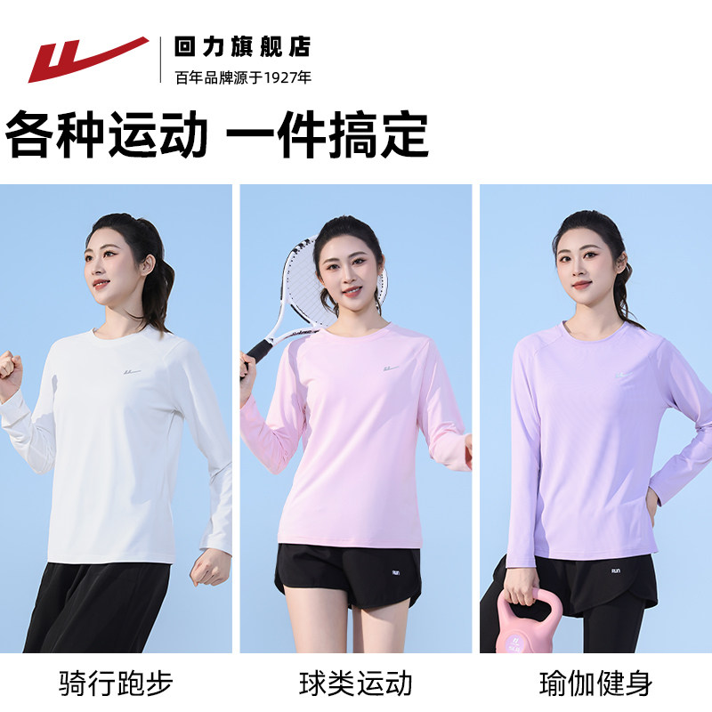 回力速干衣长袖女户外登山打底新款白色t恤健身跑步网球运动上衣