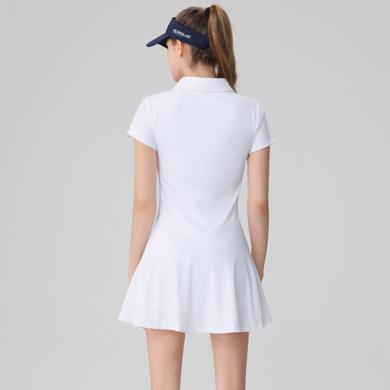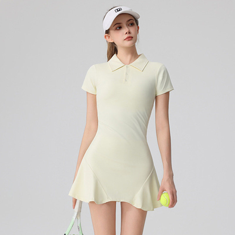 新款运动短袖连衣裙女带胸垫修身网球服含短裤polo领高尔夫裙套装