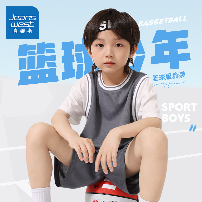 真维斯童装男童篮球服套装儿童夏季红色运动服两件装男大童夏装薄